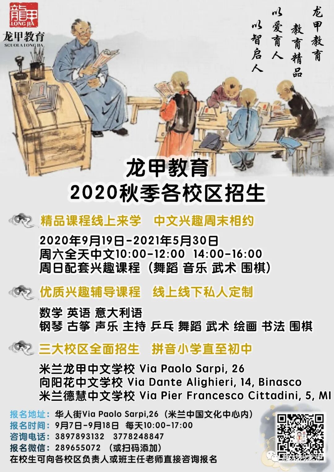 特殊时期应特殊对待,我们龙甲教育将一直陪伴着广大华人家长,帮家长朋友们排忧解难,与意大利学校建立最密切的联系,把最权威的信息解读在第一时间传递给大家!新学期出于安全考虑,为了满足不同地区的家长需求,作为因疫情而最早开始进行网络教学的中文学校,本学期我们将继续进行网络授课,直至具备返校条件,周六中文班与周日配套兴趣课程,另有优质多样的兴趣辅导课程以供选择,为大家提供最适合本地孩子的精品网络教学。