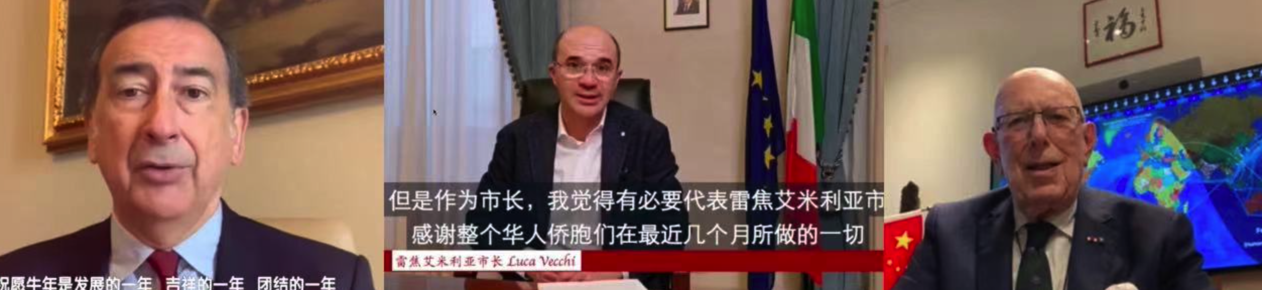 米兰市长萨拉、雷焦·艾米利亚市长维奇、意中基金会兼意中协会主席波塞利通过视频向领区中国公民致以新春祝福,盛赞侨社支援当地抗疫作出突出贡献,期盼两国合作在新的一年结出更多硕果。
