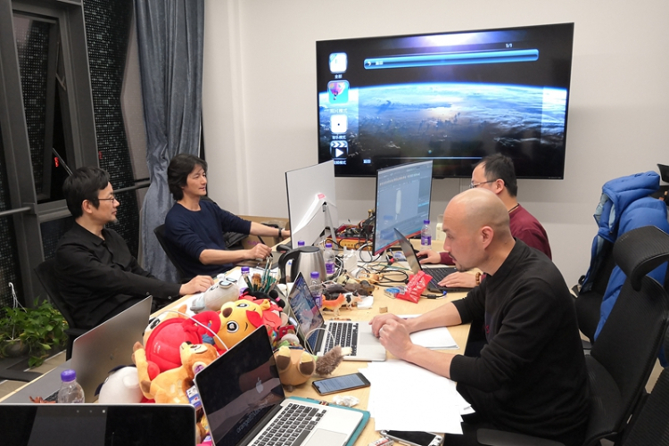 “冰墩墩”设计总执行刘平云近日在江西讲述了“冰墩墩”诞生过程及其创作背后的故事。图为广州美术学院曹雪(左一)、刘平云(右一)带领设计团队工作的资料图片。(图片来源:中新社)
