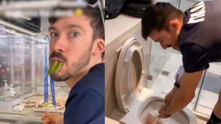 紧张的竞技之余,许多外国运动员把精力放在了“沉浸式”体验冬奥村的美食上。在众多“美食博主”的视频中,意大利速滑运动员达维德·吉奥托脱颖而出:在其中一个视频中,吉奥托大快朵颐,食物塞到嘴里放不下,在另一段视频中,吉奥托疑似因为吃太多美食将马桶拉堵,队友则在一旁拼命嘲笑。