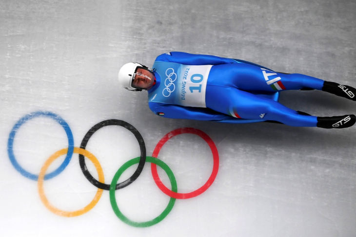 2月6日,意大利选手多米尼克·菲施纳勒在雪橇男子单人赛中,他获得季军。(图片来源:新华社)