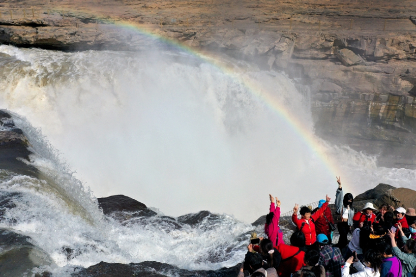游客在参观黄河。(图片来源:新华社)