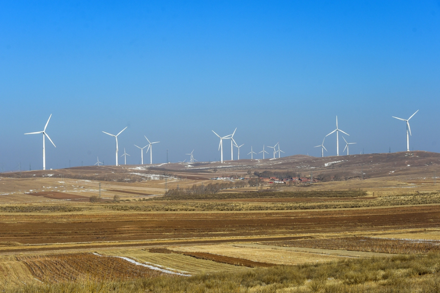 资料图为位于乌兰察布市察哈尔右翼中旗的恒润风电场。(图片来源:新华社)