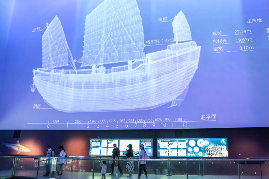 游客在海南省博物馆里参观“南溟奇甸”南海海洋文明陈列展。(图片来源:新华社)
