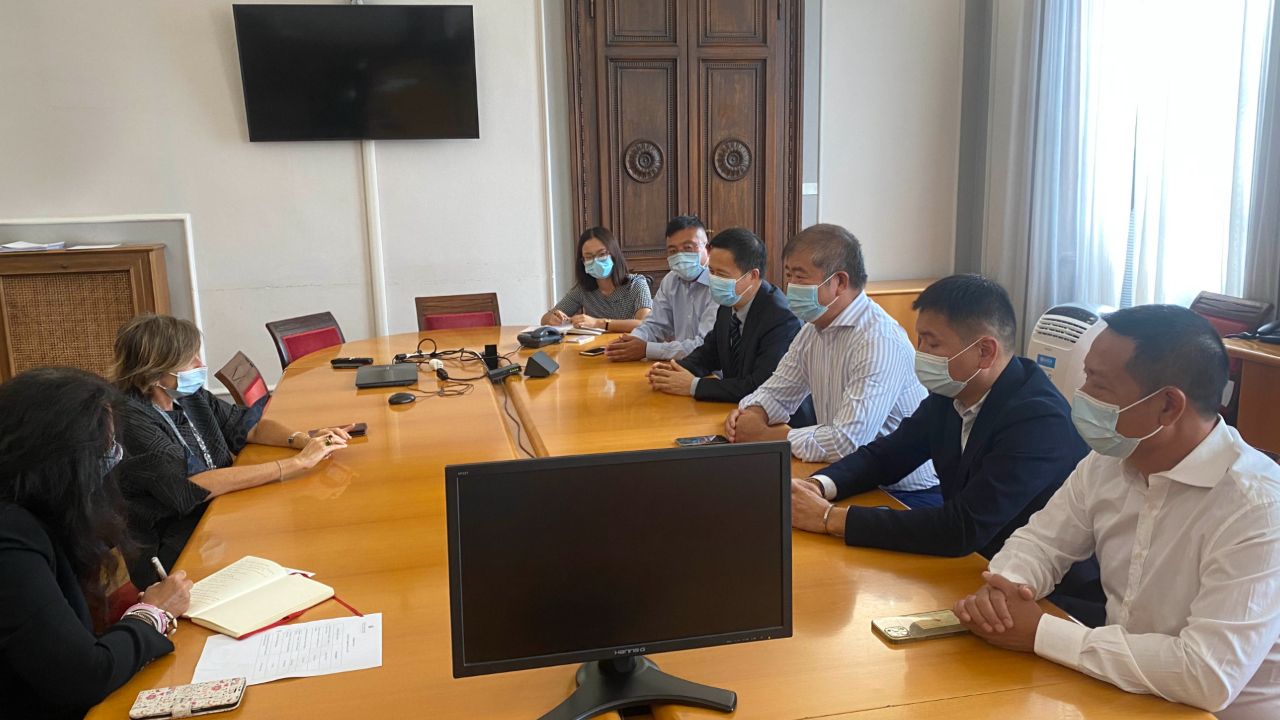 2022年9月5日上午十一点,米兰侨界代表周立新会长等一行五人协同中国驻米兰总领事馆张凯斌副总领事、丁祖贤领事一起,应约来到了米兰省督府办公大搂会见省督府内阁部长并进行了座谈交流。