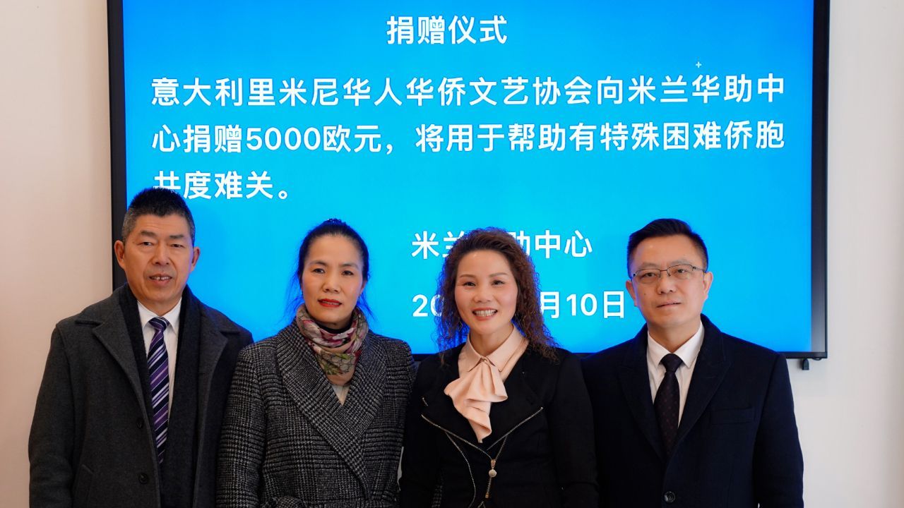 春天的米兰,风轻云淡,阳光明媚。2023年2月10日,意大利里米尼华人华侨文艺协会金秀会长率首席执行会长留正洪执行会长冯志龙秘书长胡芝莲等四人,从350公里外开车来到米兰,向米兰华助中心捐赠5000欧元,将用于帮助有特殊困难的侨胞排忧解困。