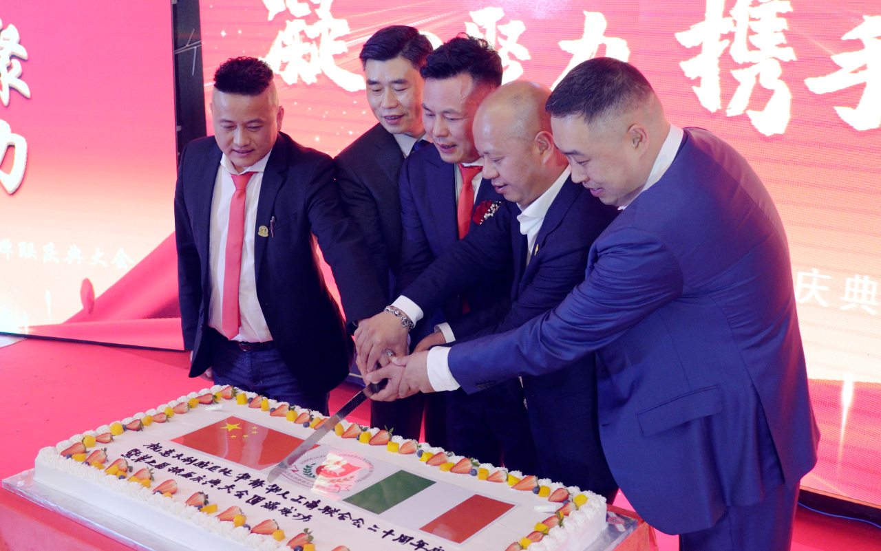 一份祝贺威尼托华侨华人工商联合会20岁生日的巨型蛋糕摆在了鲜花簇拥的主席台上,这是对联合会全体成员的褒奖,是对联合会明天的祝福。王士晃会长与理事会核心成员郑重地切开蛋糕,象征着联合会宏图大展、步步登“糕”!