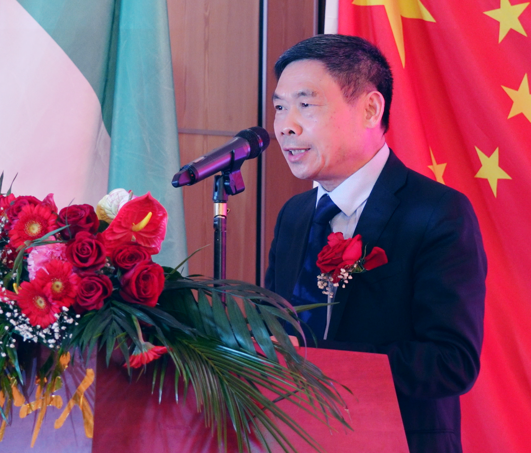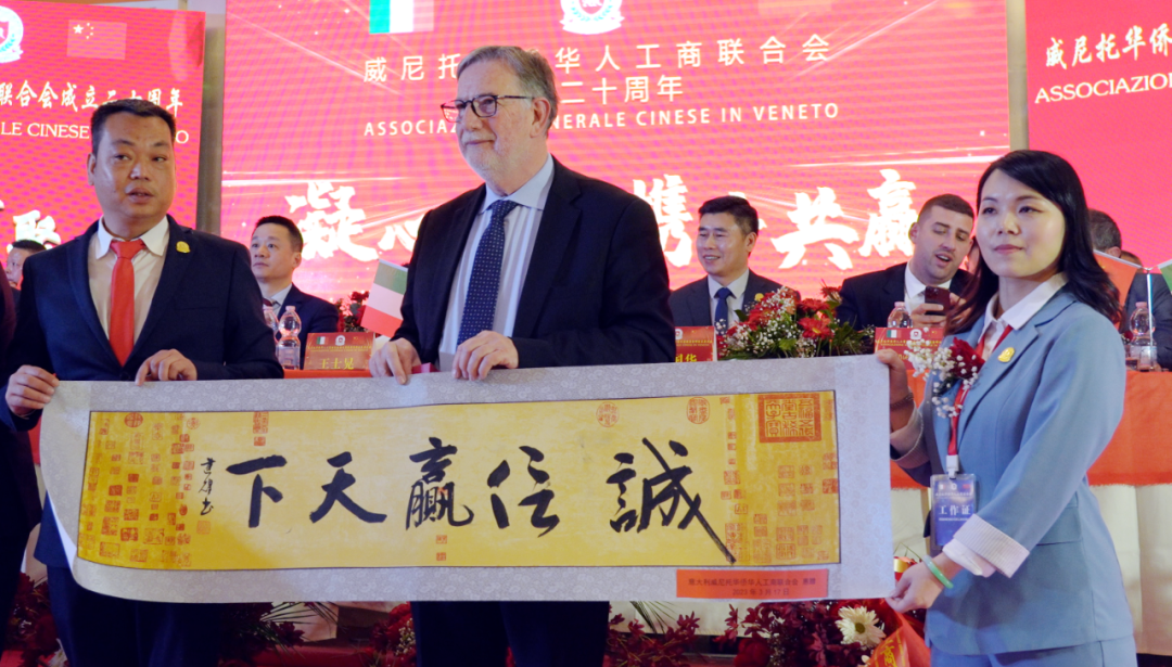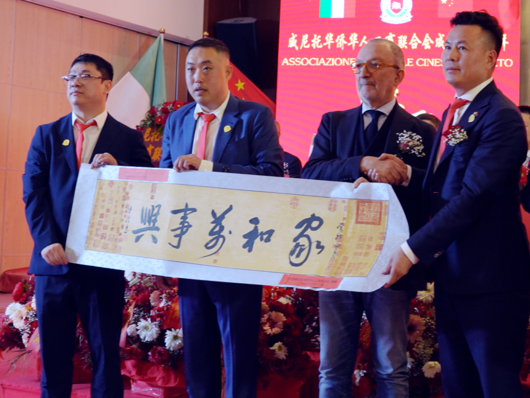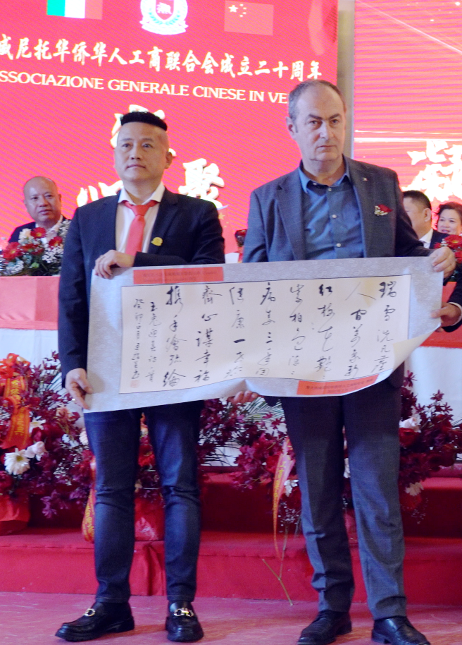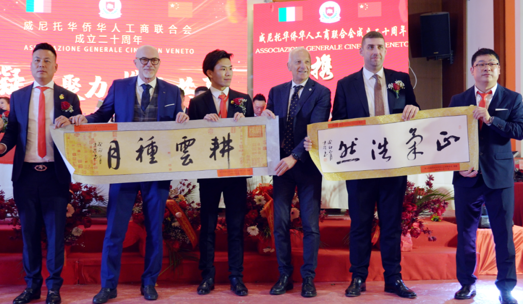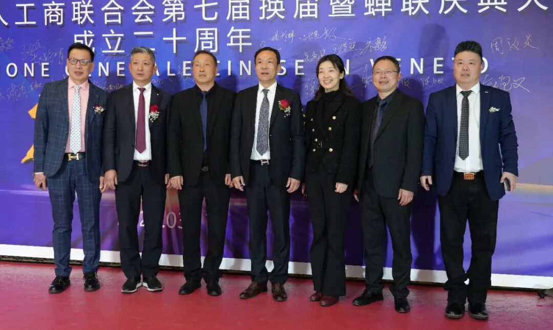 中国驻米兰总领事刘侃、重庆市侨联办公室主任牟童、温州市侨联副主席董邦云、米兰华侨华人工商会会长黄国权、罗马华侨华人联合总会会长陈和平、意大利华商总会会长洪森淼、padova副省长Daniele Canella、工商会主席Antonio Santocono、威尼托大区古城墙城市联盟主席Claudio arzenton等中外嘉宾先后致辞,对威尼托华侨华人工商联合会成功换届、王士晃蝉联会长表示热烈祝贺!他们希望联合会不断进取,为当地经济繁荣、促进华人积极融入及中意两国友好做出新的贡献,祝愿联合会的明天更加辉煌!