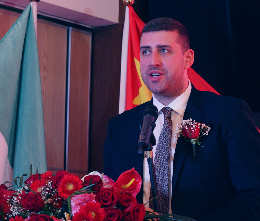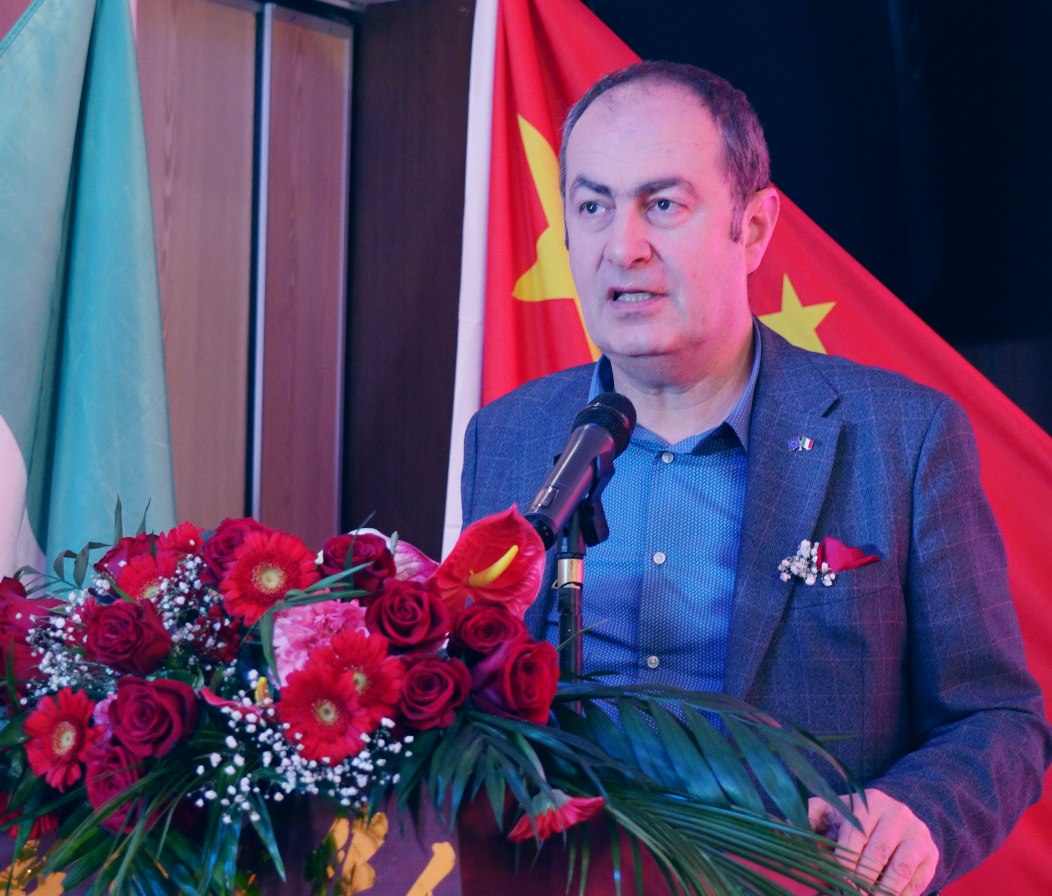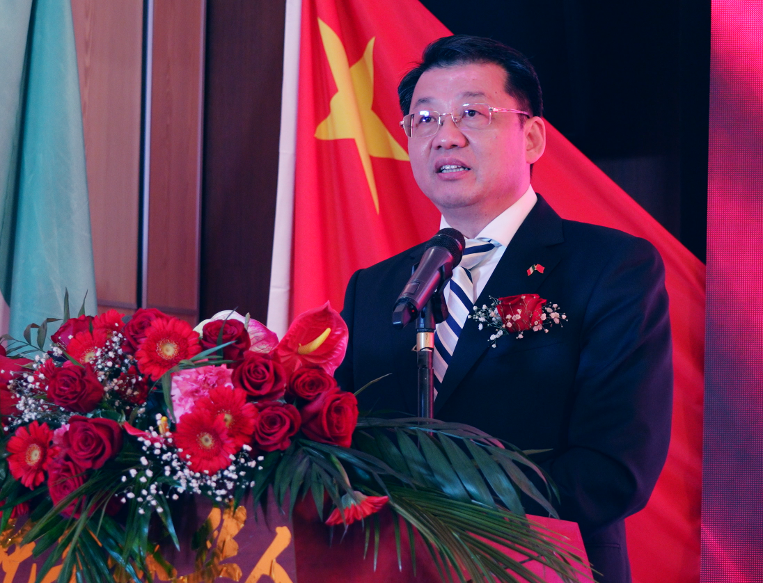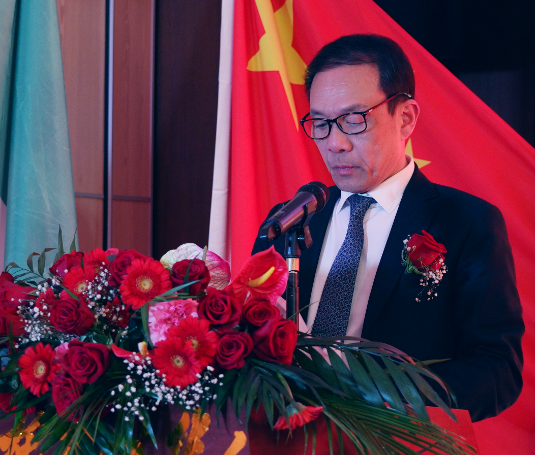 中国驻米兰总领事刘侃、重庆市侨联办公室主任牟童、温州市侨联副主席董邦云、米兰华侨华人工商会会长黄国权、罗马华侨华人联合总会会长陈和平、意大利华商总会会长洪森淼、padova副省长Daniele Canella、工商会主席Antonio Santocono、威尼托大区古城墙城市联盟主席Claudio arzenton等中外嘉宾先后致辞,对威尼托华侨华人工商联合会成功换届、王士晃蝉联会长表示热烈祝贺!他们希望联合会不断进取,为当地经济繁荣、促进华人积极融入及中意两国友好做出新的贡献,祝愿联合会的明天更加辉煌!