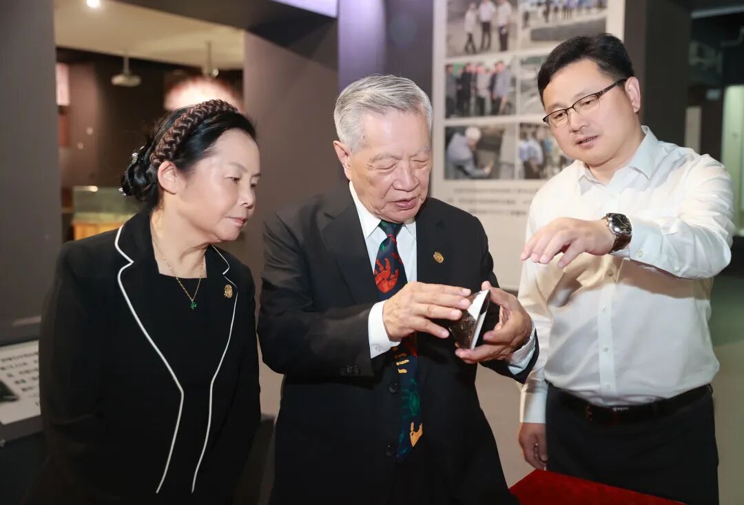 ▲李昌钰博士夫妇参观“运盐河如皋段考古成果展”
