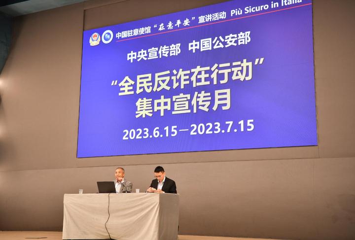 近期,海外电信诈骗十分猖獗,为旅意同胞的生活工作带来骚扰和不便,也导致少数同胞蒙受经济损失。为提升广大同胞安全防范意识,驻意大利使馆7月7日在罗马蜂巢酒店举行“在意平安”反诈宣讲活动,介绍反诈防骗、领事保护和海外安全防范相关知识。在罗马地区的华侨华人、留学生、中资企业等近百余人参加,罗马警察局和宪兵也派代表出席。