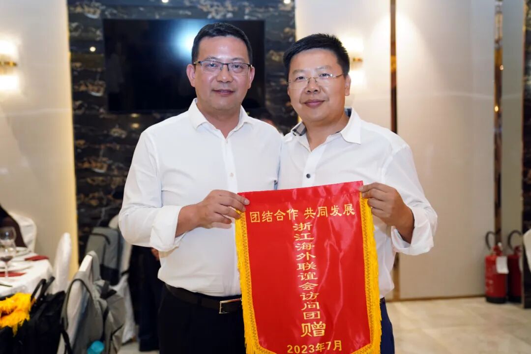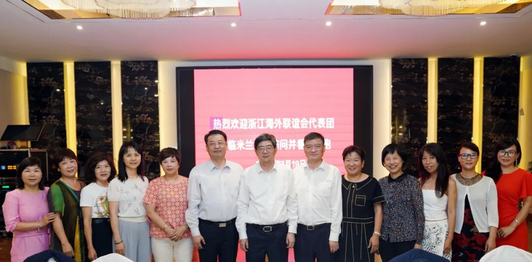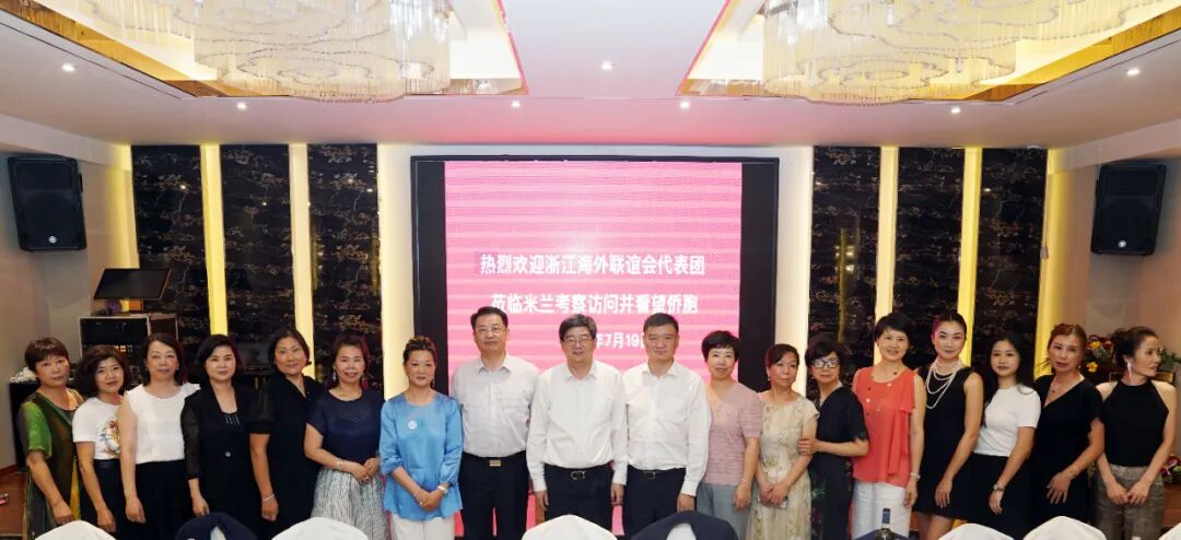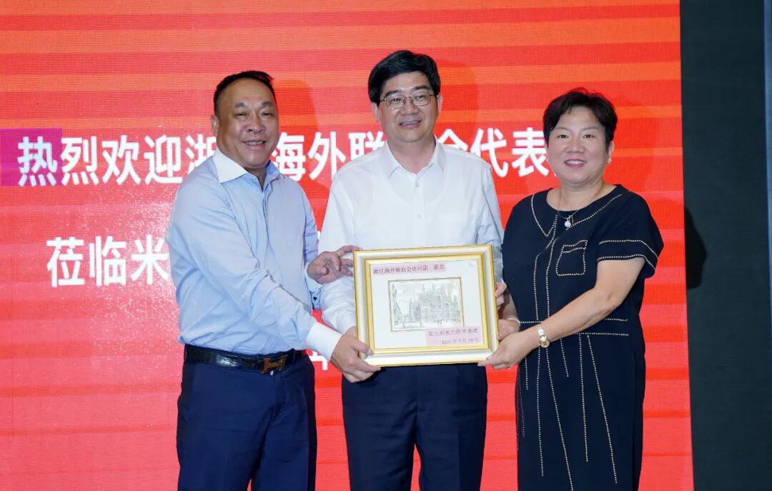 米兰华侨华人贸易促进会会长项新煌、米兰华侨华人妇女会会长胡月燕代表米兰侨界向浙江海外联谊会代表团赠送了纪念品。