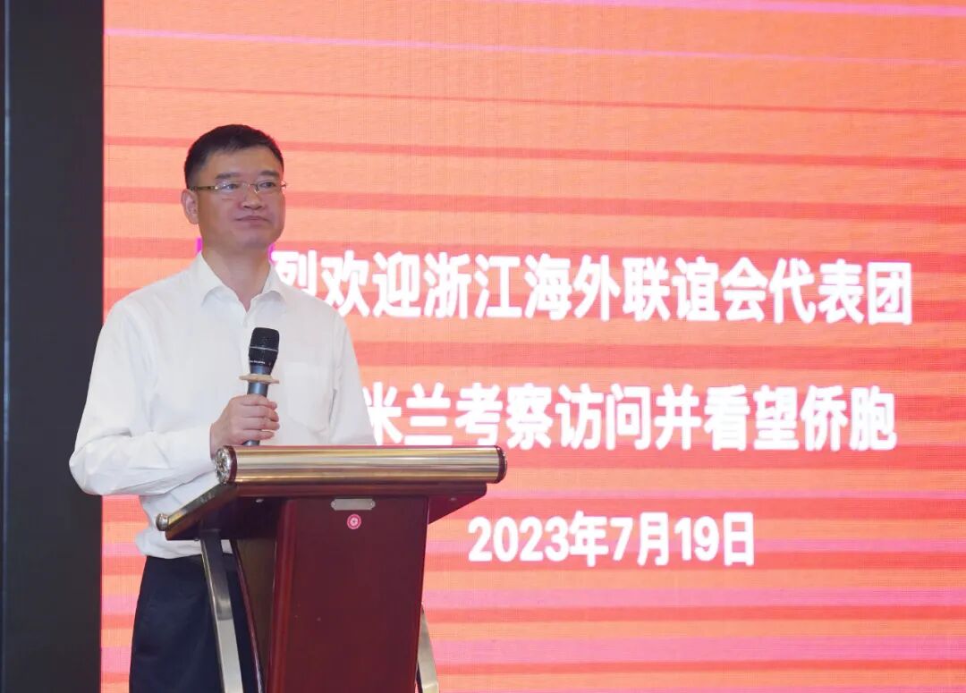 刘侃总领事强调,浙江是著名的“四千”精神发源地,广大旅意侨胞就是凭借着这股精神,远渡重洋,在意大利白手起家,历尽艰辛、辛勤耕耘,走上了创业发展之路。经过几十年的打拼努力,不仅站稳了脚跟,安家立业,而且还积极融入当地,为驻在国经济社会发展作出了特殊贡献。正如习近平总书记所言:“华侨一个重要的特质就是爱国爱乡”。广大旅意侨胞不忘关心家乡的建设和发展,纷纷回乡投资兴业,支持家乡公益事业,为浙江社会经济发展也发挥了重要作用。尤其是疫情期间,广大旅意侨胞团结一心、守望相助、共克时艰,与祖国人民心心相印,与当地人民同舟共济,为国内和当地疫情防控作出了宝贵贡献,受到当地政府和意大利民众的高度赞赏与肯定。我们相信,在党中央的正确领导下,在国内涉侨部门和浙江省侨务部门的关心支持下,领区侨届一定不忘初心,秉持爱国爱乡的优良传统,关心支持祖(籍)国建设发展,更好团结服务侨胞,在实现中华民族伟大复兴、推动中意友好合作、构建人类命运共同体的新征程上作出新的更大贡献。中国驻米兰总领事馆将牢记习近平总书记关于加强和改进侨务工作的指示要求,全面贯彻落实党和国家侨务工作方针政策,始终秉持“外交为民”理念,积极支持配合浙江省委、省政府有关侨务工作,不断深化慰侨服务举措,团结凝聚广大侨胞,形成共同致力于民族复兴的强大力量。