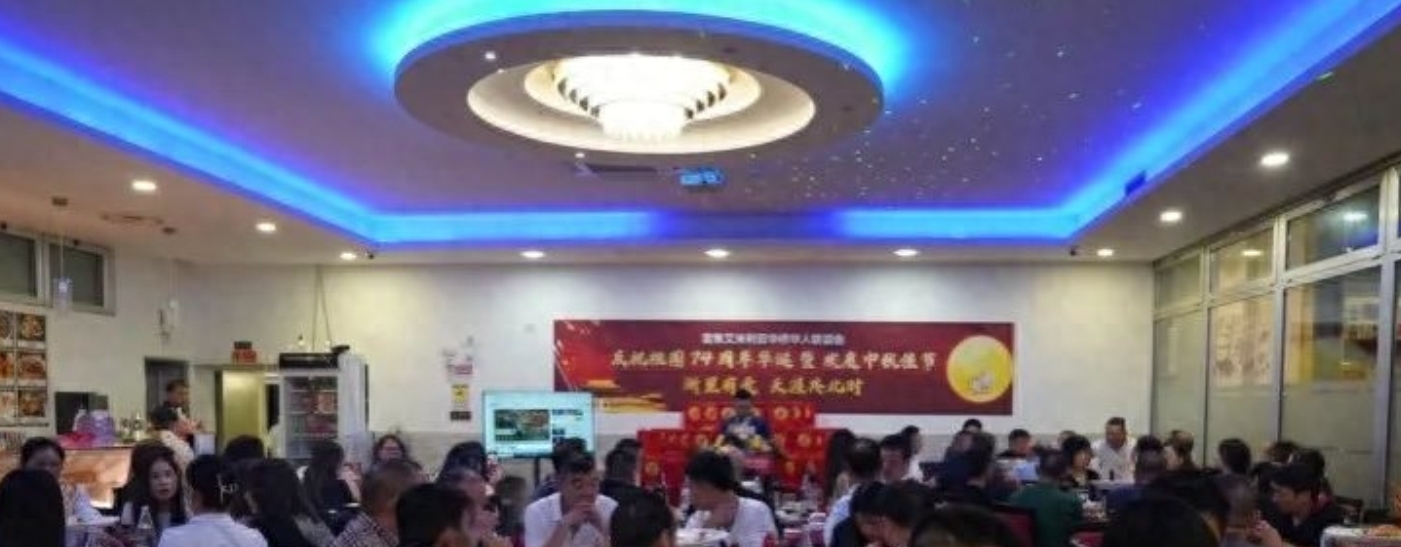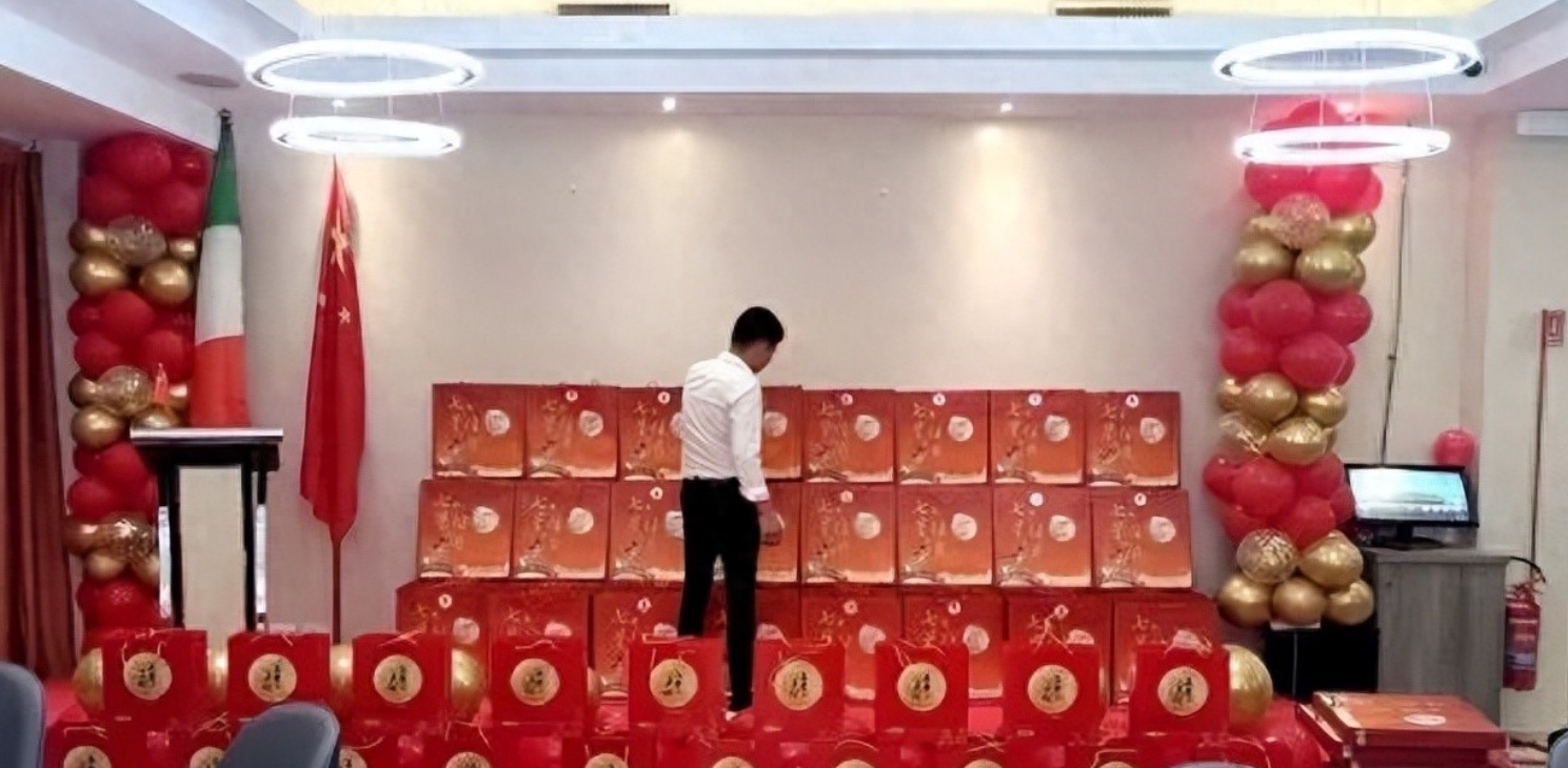 当天晚间,雷焦艾米利亚市著名的美味海鲜阁宴会厅灯火璀璨装饰一新,来自祖国的精美月饼礼盒和侨界购置的月饼码放整齐,充满了节日的喜庆气氛。