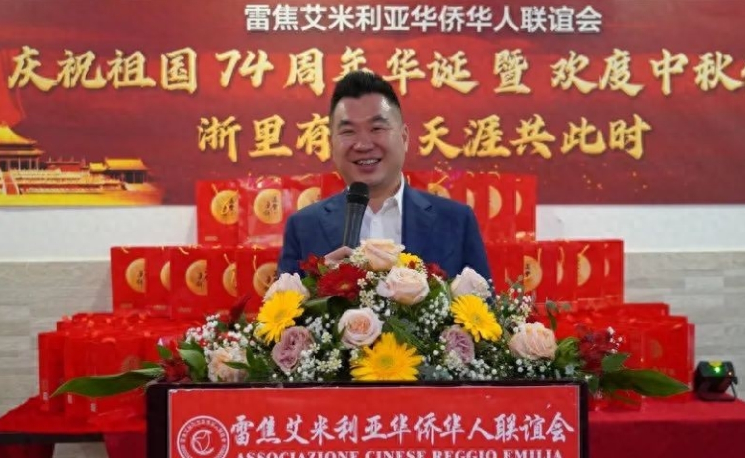 九、10月1日正值祖国生日的大喜日子,意大利雷焦艾米利亚华侨华人联谊会举行晚会,隆重庆祝祖国74周年华诞暨欢度中秋佳节,同时举行“浙里有爱,天涯共此时”启动仪式。陈增杰会长发表节日贺辞。