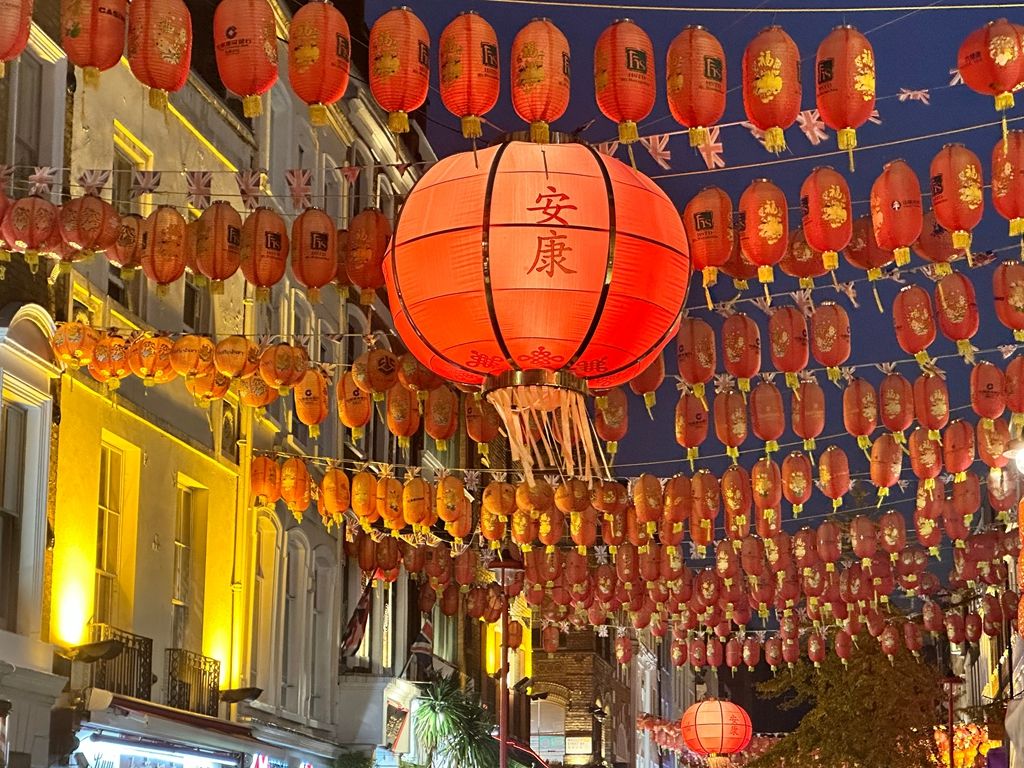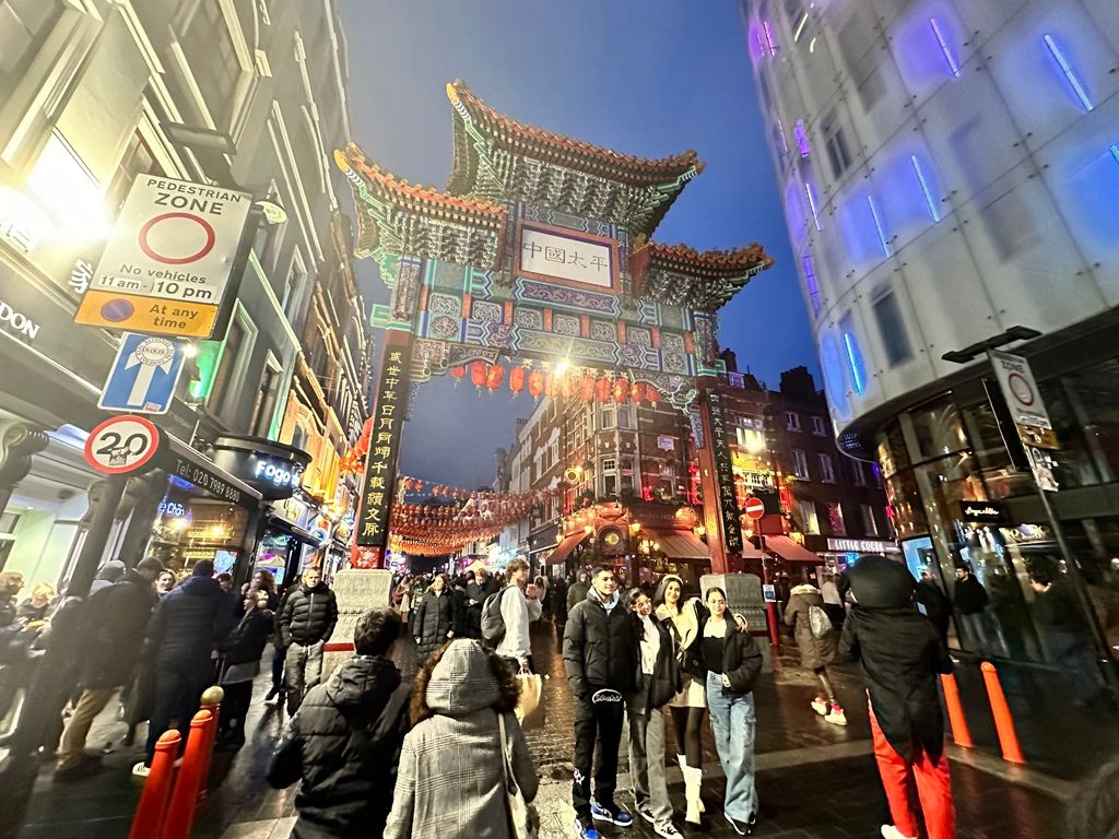 步入伦敦唐人街,气派的“中国太平牌楼”迎接世界游客,大红灯笼一排排高高挂起,瑞兽石狮子呈现“镇宅之姿”,古朴的凉亭寓意吉祥团圆,街边酒楼的橱窗前挂着油亮的广式烧鸭,商超里的中国货物品类丰富,“中国风”元素尽收眼底。
