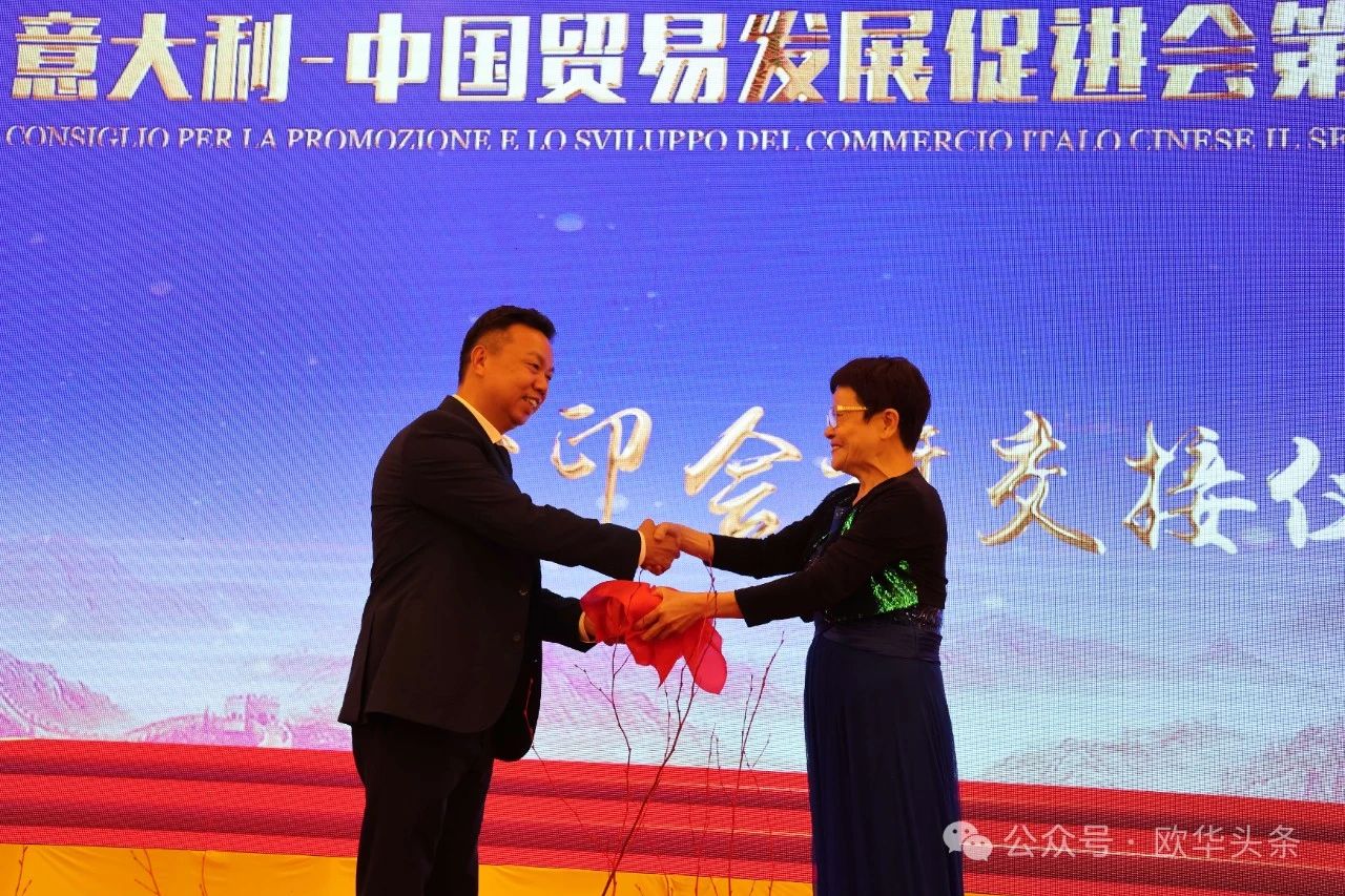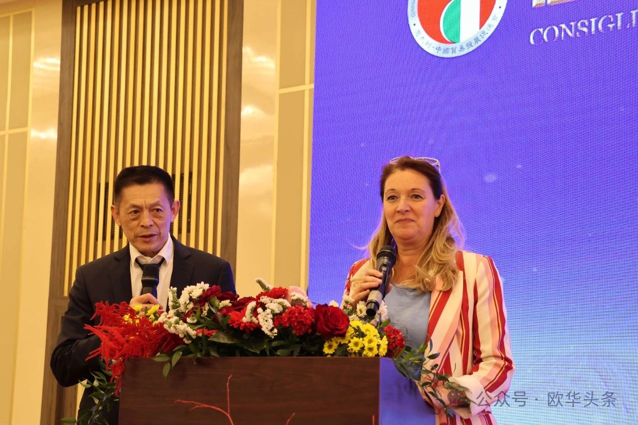 朱玉华表示,意中贸促会成立于2015年,一路走来,参与了中意两国经贸、文化与公益事业,主席团聚集了来自意大利各地的侨领,搭建了中意两国交流的桥梁。她回顾了协会历次经贸考察团的活动,以及在公益事业上的不懈努力,展现了意中贸促会的积极形象和爱心责任。她表达了对新任主席王增理的信任和期望,赞扬了王主席的领导能力和国际视野,并预祝意中贸促会未来的发展更加辉煌。