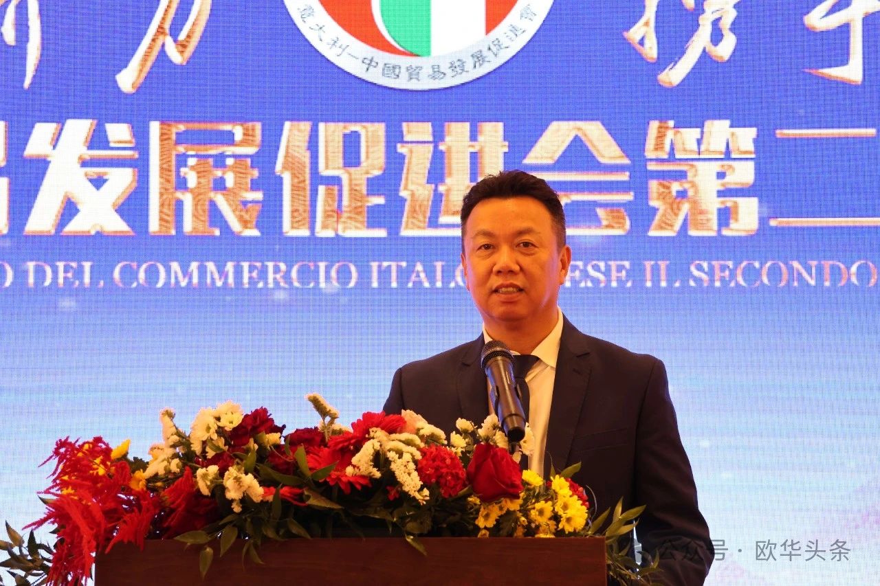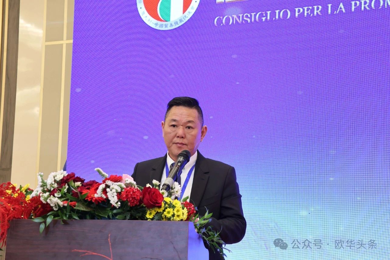 ▲意大利-中国贸易发展促进会第二届主席王增理发表就职讲话。