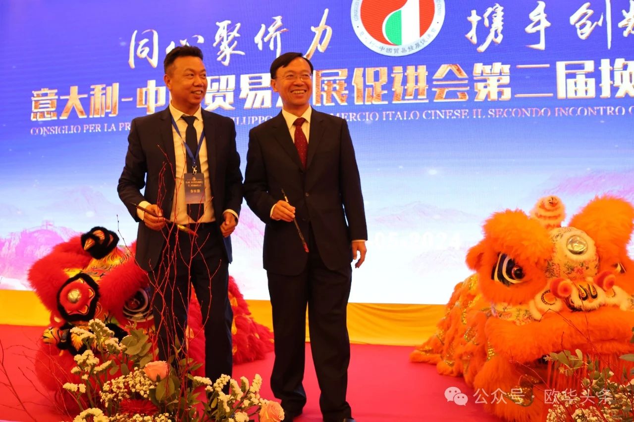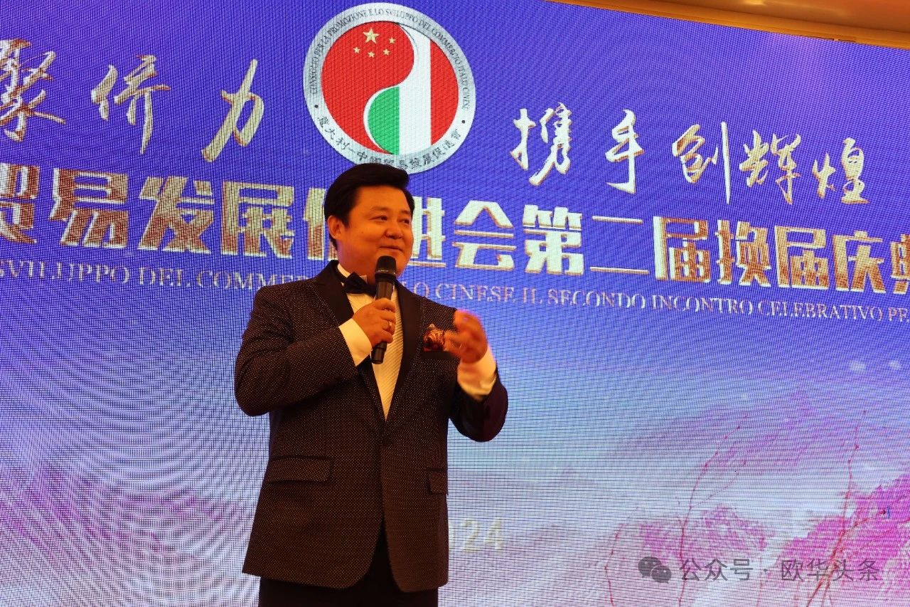 (陈静)2024年5月11日下午,意大利-中国贸易发展促进会第二届换届庆典大会在普拉托聚福酒店如期举行。中国驻佛罗伦萨总领事馆代总领事管仲奇、托斯卡纳大区议员Iraria Bugetti、Carmignano市市长Edoardo Prestanti、普拉托前文化局局Daniela Toccafondi、温州市侨联董邦云副主席等政要,以及来自欧洲、美洲、中国和意大利罗马、米兰、帕多瓦、佛罗伦萨、普拉托等地区的各侨社代表、企业家、华侨华人、中意各界友好人士500多人汇聚一堂,共同见证这一重要时刻。