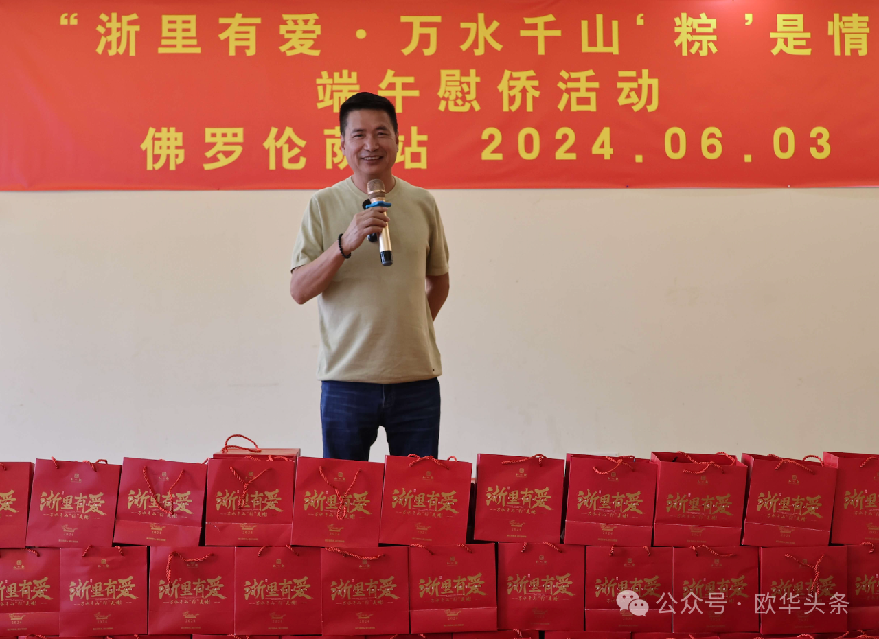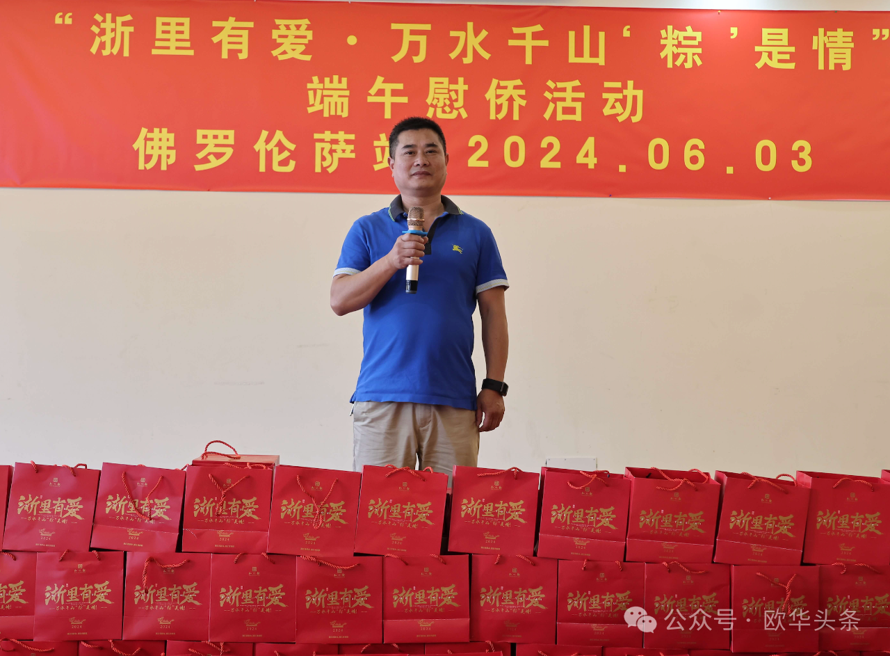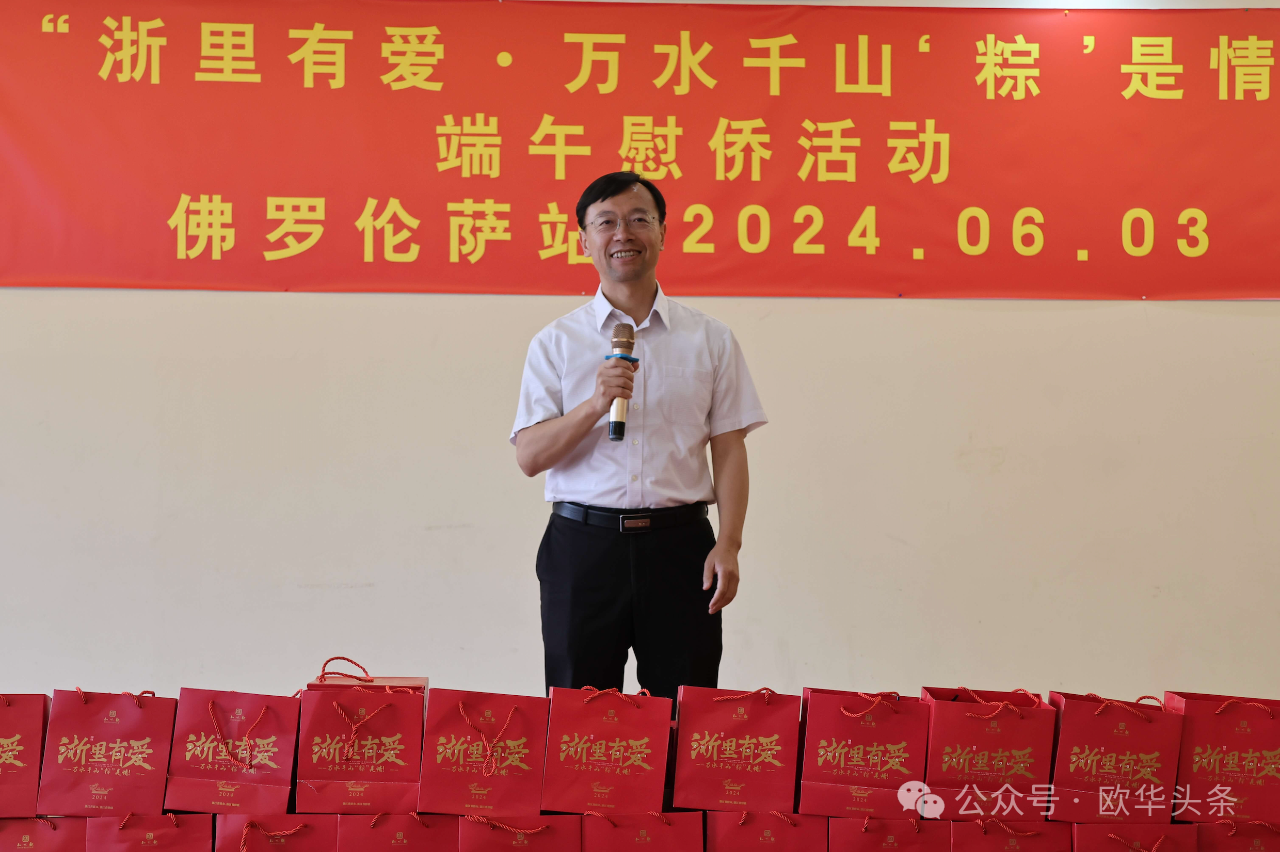 活动伊始,佛罗伦萨华侨华人联合总会会长陈敏勤发表了热情洋溢的讲话。他表示,端午节送粽子慰问侨胞不仅仅是节日的问候,更是祖国家乡父老对海外游子的牵挂和思念之情。他特别感谢浙江省侨办侨联多年来对海外侨胞的关爱,无论是在特殊时期还是平时,家乡的领导们始终心系侨胞,令他们感受到了家的温暖。