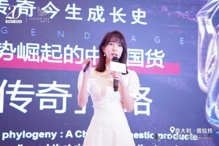 随后传奇今生品牌公司——广州富诚国际控股有限公司CEO Aura女士,为现场来宾们分享了关于传奇今生的《逆势崛起的国货「传奇」路》,讲述了创始人陈董自38年前投身美业后,是如何怀抱“创立中国人自己的国际化民族品牌”这一初心,一步一步将传奇今生发展成如今兼具「经典中国美妆品牌」和「一站式智慧轻创业平台」的励志故事。