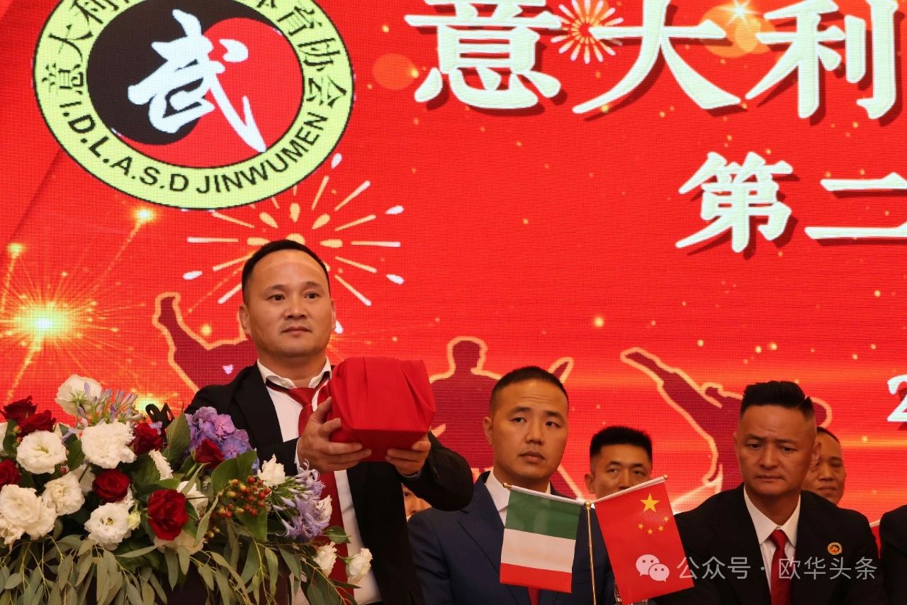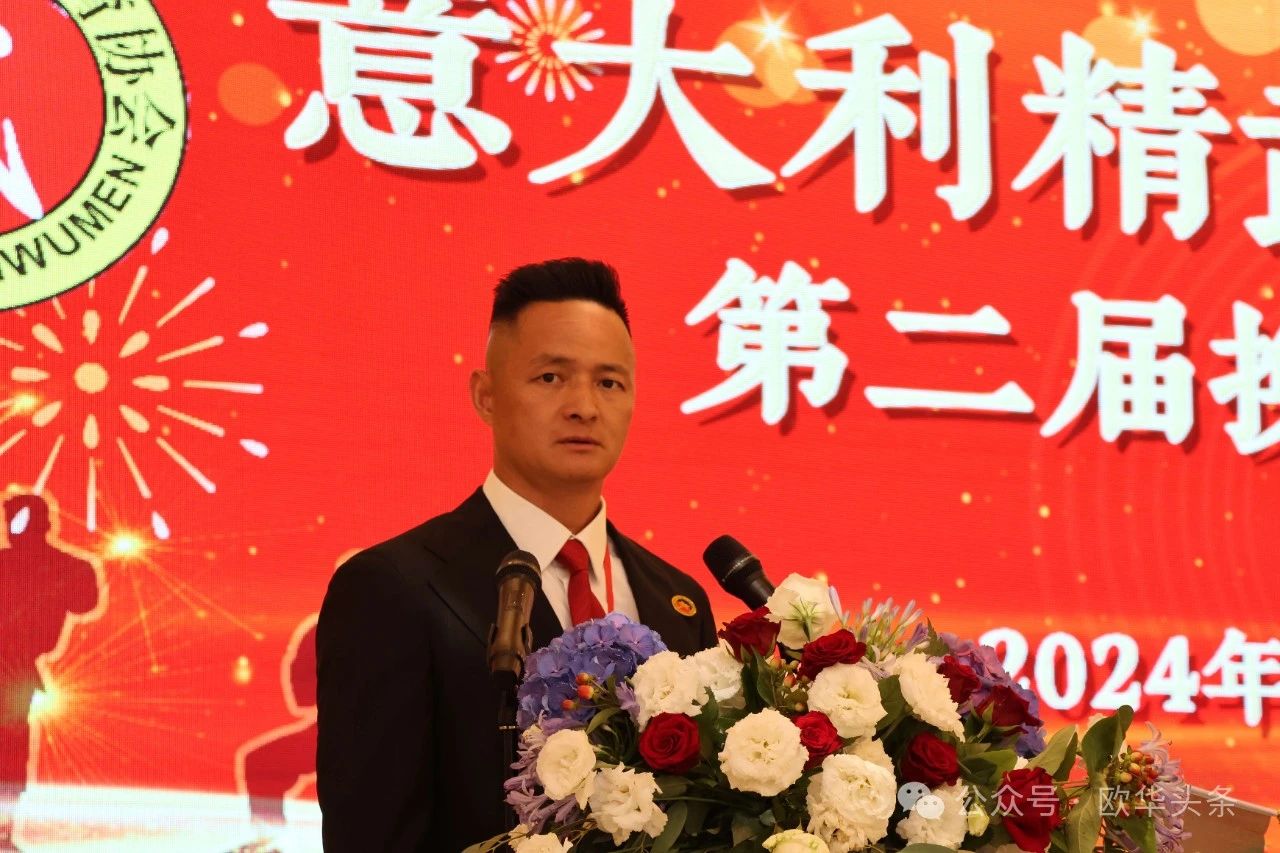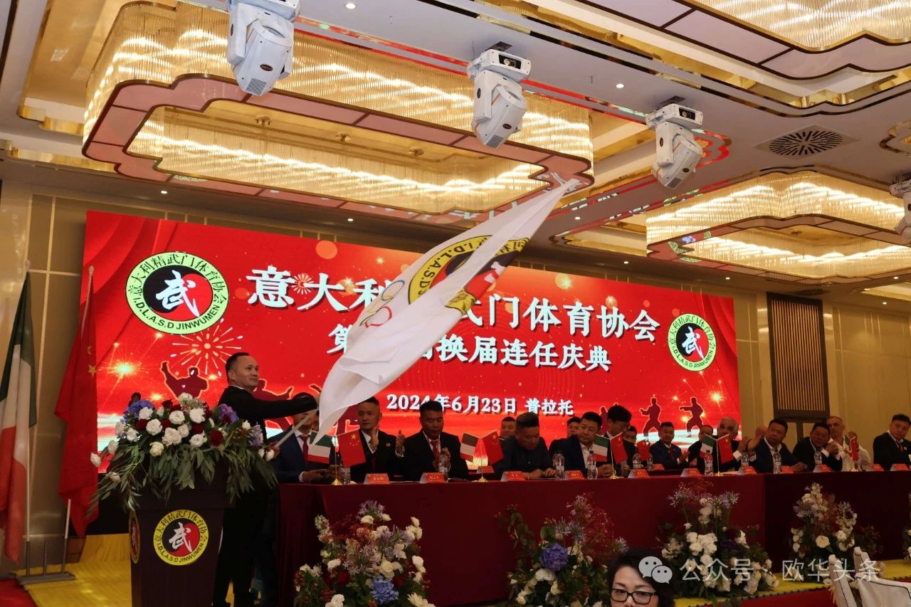 (陈静)2024年6月23日,意大利精武门体育协会第二届换届庆典大会在普拉托市的聚福酒店隆重举行。驻佛罗伦萨总领事馆代总领事管仲奇、温州市侨联副主席董邦云、意大利国家武术协会副主席Follari Mario,以及来自意大利各地区的华侨华人和武术爱好者300余人欢聚一堂,共同见证这一重要时刻。