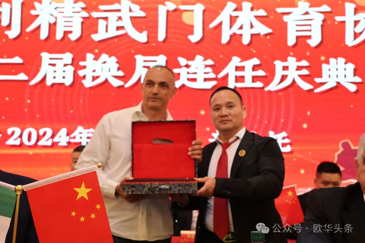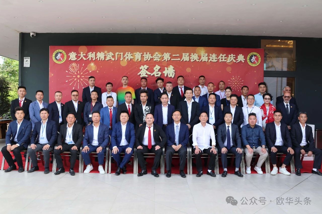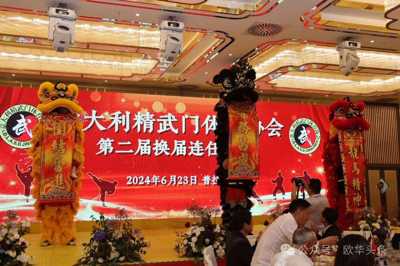 (陈静)2024年6月23日,意大利精武门体育协会第二届换届庆典大会在普拉托市的聚福酒店隆重举行。驻佛罗伦萨总领事馆代总领事管仲奇、温州市侨联副主席董邦云、意大利国家武术协会副主席Follari Mario,以及来自意大利各地区的华侨华人和武术爱好者300余人欢聚一堂,共同见证这一重要时刻。