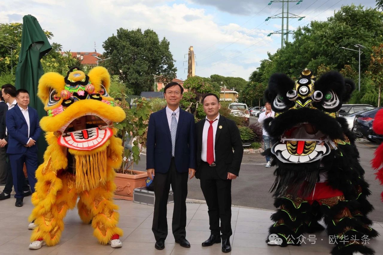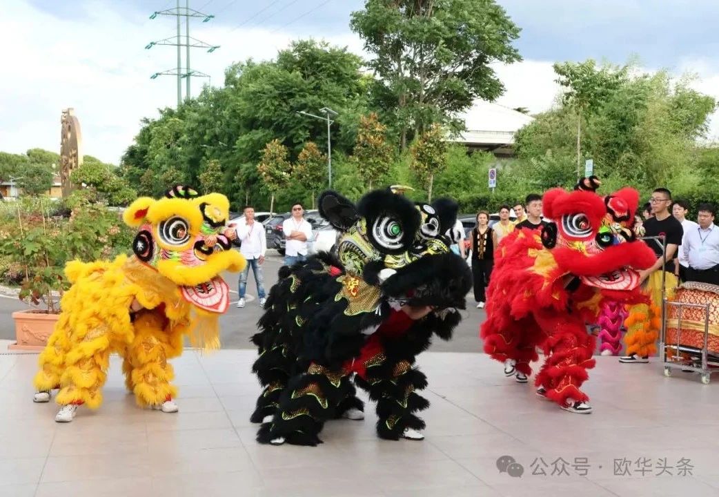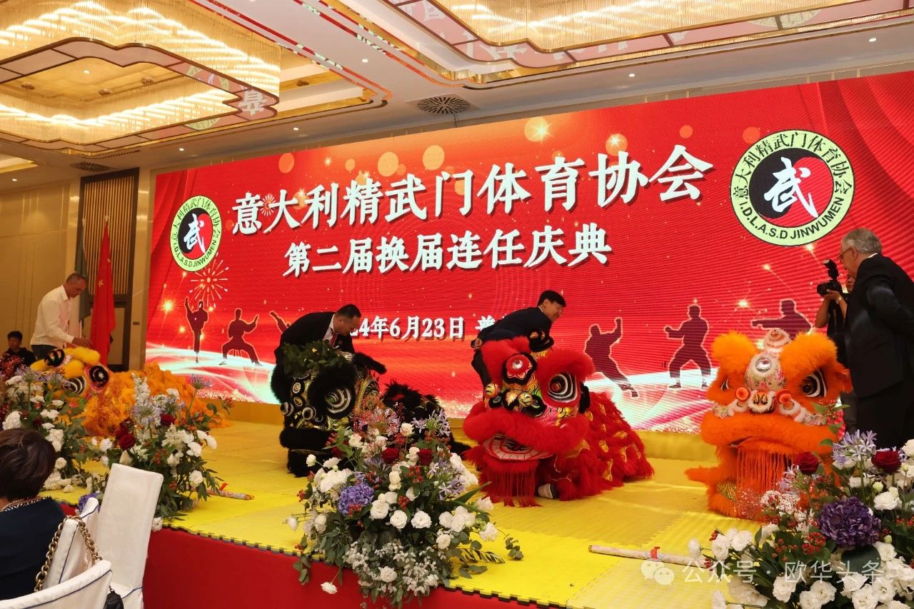 ▲现场响起振奋人心的锣鼓声,舞狮点睛,为意大利精武门体育协会换届大会的圆满举行送上祝福。