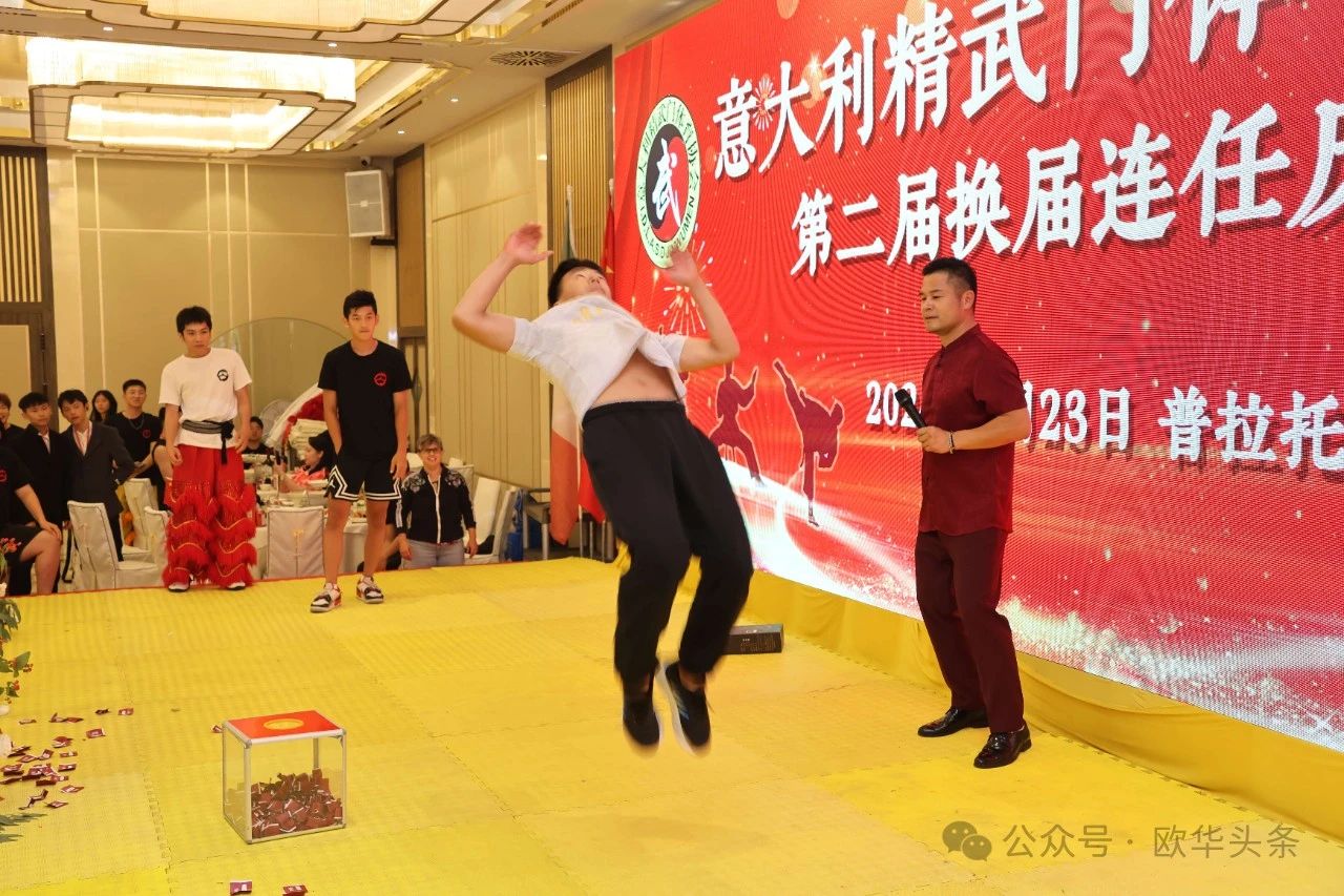 活动现场气氛热烈,宾客们热情高涨。此次庆典不仅是对过去成绩的肯定,更是对未来发展的展望。各界嘉宾齐聚一堂,共同祝愿精武门体育协会在新一届领导班子的带领下,继续发扬中华武术的精神,为促进中意两国文化交流和增进友谊做出更大贡献。