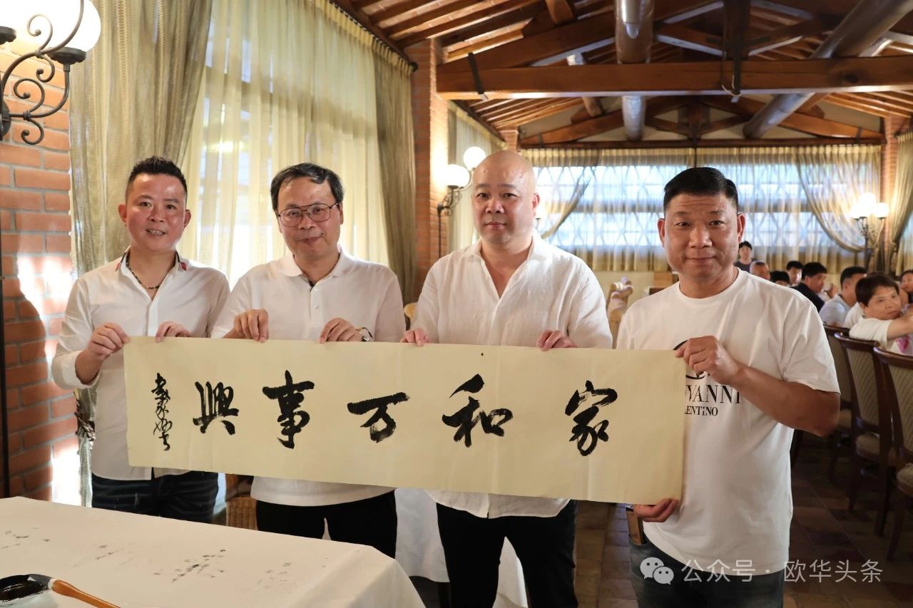 中国美术学院书法学院教授、博士生导师、书法理论系主任、中国美术学院艺术学学科建设委员会委员戴家妙在欢迎会现场挥毫泼墨,为意大利永嘉总商会题字,祝愿商会事务蒸蒸日上,会员团结一致,共创美好未来。