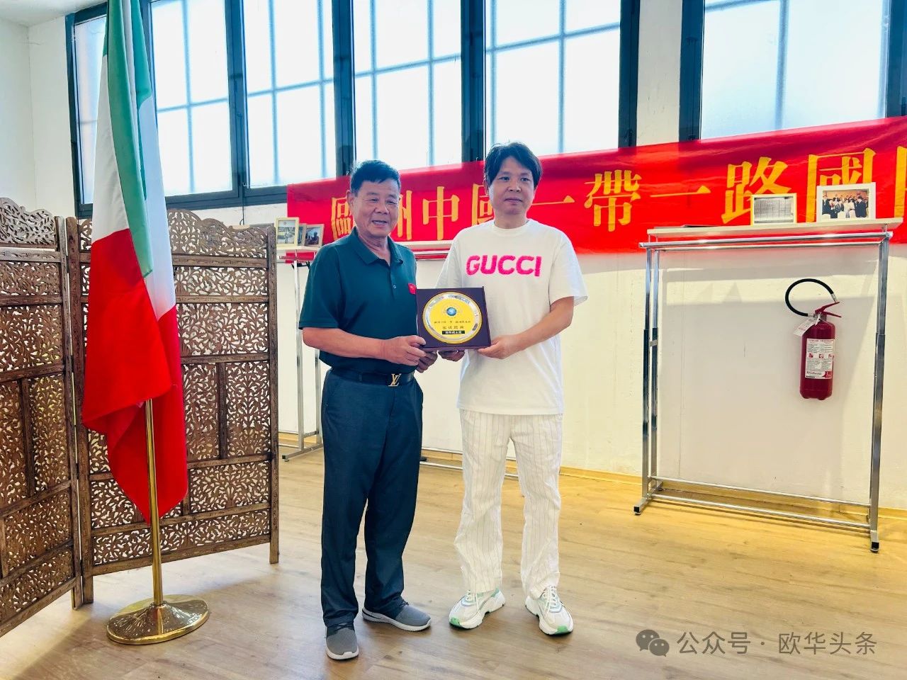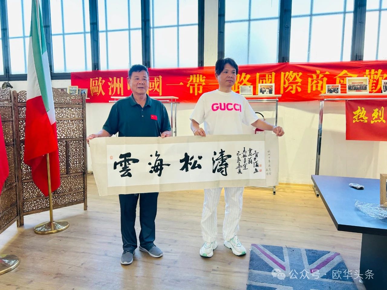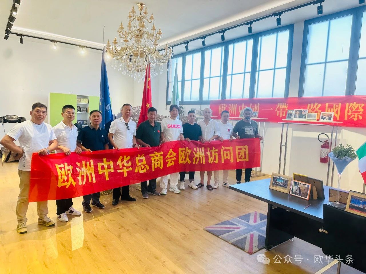 2024年7月9日,欧洲中华总商会执行主席、欧洲华侨华人社团联合会顾问、欧洲中国和平统一促进会高级顾问、西班牙欧洲华人商贸联谊会永远名誉主席陈贻成先生携欧洲中华总商会副主席、葡萄牙华侨华人总会常务副会长叶德静,欧洲中华总商会副主席、德国浙江总商会执行会长蔡锦九,以及欧洲中华总商会副主席、希腊中国侨商总会会长王绍义访问意大利普拉托。在这次访问中,他们与欧洲中国一带一路国际商会张松伟主席进行了深入交流,探讨了进一步加强中欧商业合作的机会和挑战。双方互赠了纪念品,并表达了进一步深化友谊和合作的愿望。
