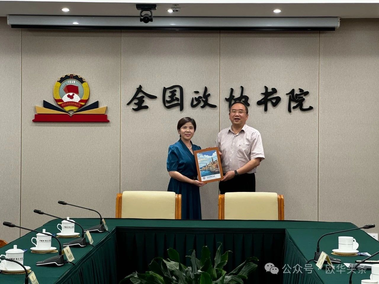 7月16日下午,代表团一行在周小红会长的带领下,与全国人大华侨委员会法案室副主任苏东、二级巡视员徐利、调研处处长王春霞、一级主任科员张晓彤等领导探讨了中意两国在侨务和妇女权益方面的合作,双方表示将继续加强交流,共同推动侨务工作的发展。