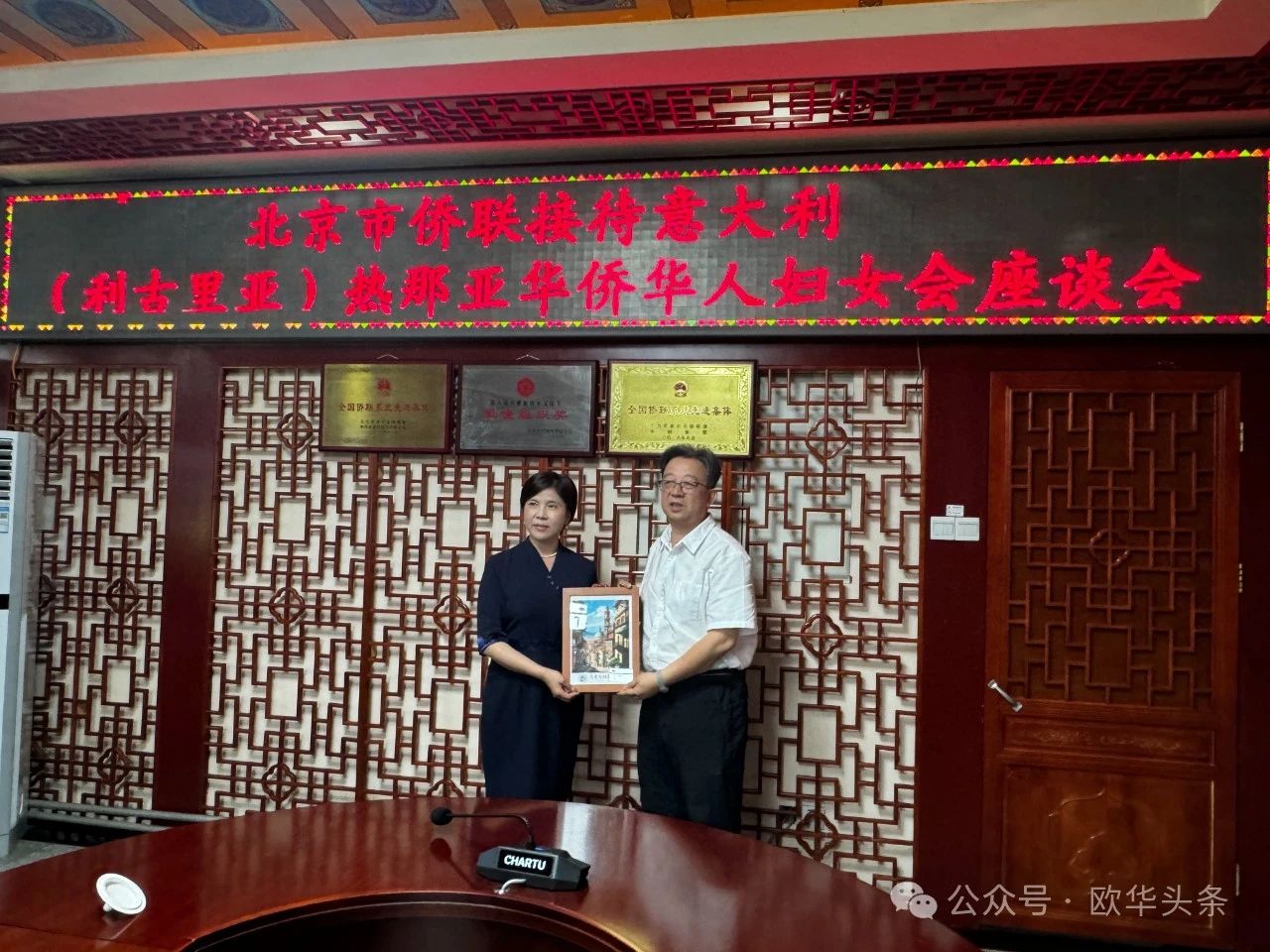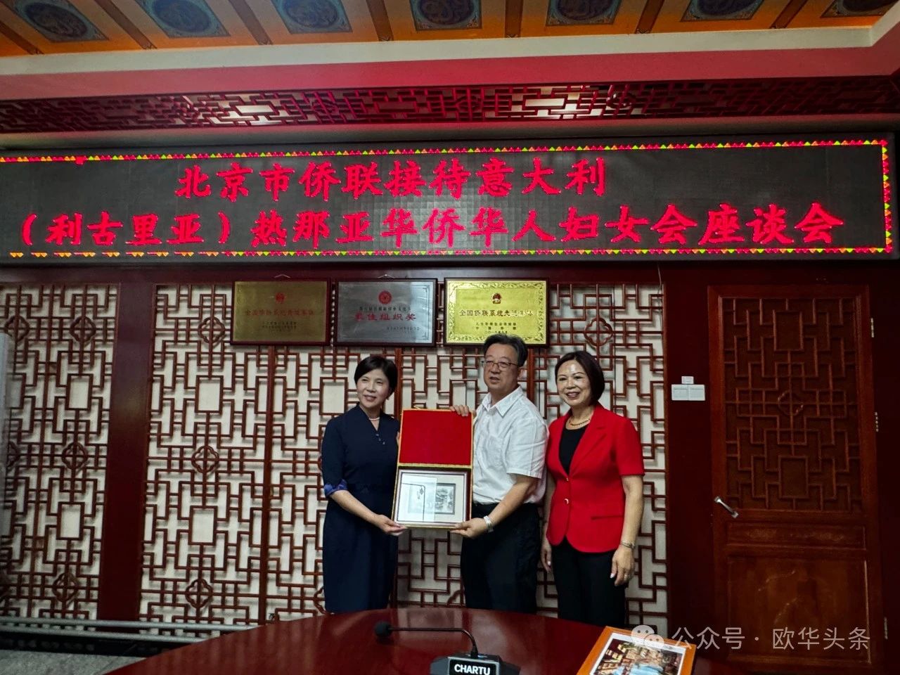 7月17日上午,北京市归国华侨联合会对意大利热那亚华侨华人妇女会代表团的到来表示热烈欢迎。北京市侨联党组成员、副主席苏泳,北京市侨联海外联谊部副部长孙济民,北京市侨联海外联谊部一级调研员张琪,北京市华侨服务中心副主任王莉等领导与周小红会长一行就如何加强首都与热那亚的侨务工作进行了交流,并探讨了未来的合作方向。