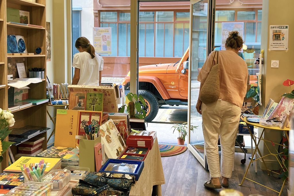 去年(2023年)6月,五楼生活书店在巴黎玛黑区开了一家艺术概念店,新店选址在独立书店集中的商圈,除中文书,还上架手工艺品、陶瓷器具、文房四宝等。李冰玉告诉记者,新店80%的顾客是当地人和游客,他们即便不懂中文,也会挑选一些商品带走。