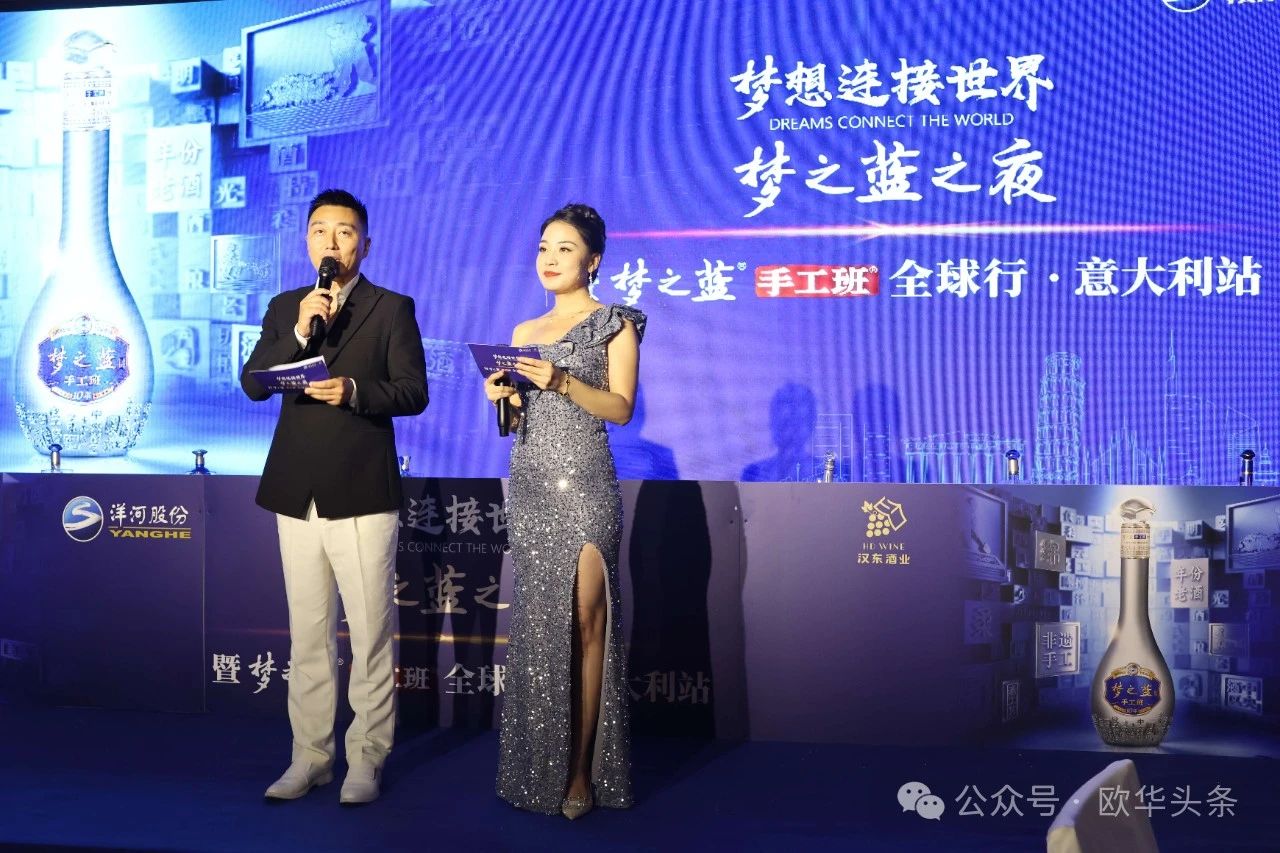 活动由主持人海少与周末共同主持,开场便展现了梦之蓝手工班传承中华酿酒工艺、倡导高品质生活的理念。梦之蓝手工班凭借其绵柔口感和高端品质,令现场嘉宾赞口不绝。本次意大利首发,标志着梦之蓝手工班正式进入意大利市场,进一步拓展其国际影响力。