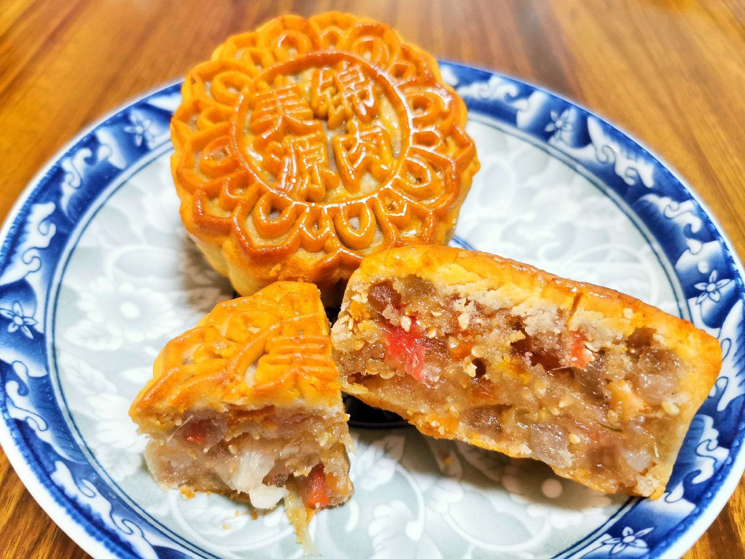 9月8日,广东台山,锦肉月饼,口感层次丰富,入口甜而不腻,是老一辈台山人惦念的中秋味。(图片来源:中新社)