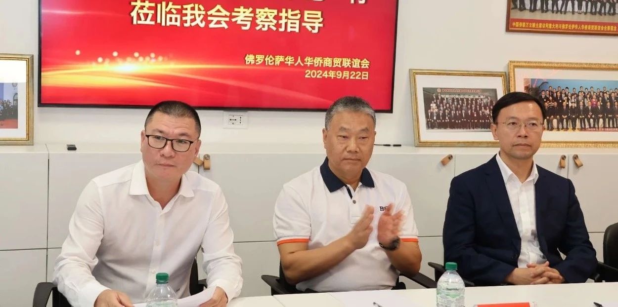 (陈静)2024年9月22日,浙江大学党委副书记朱世强带领学校有关部门学院代表访问意大利佛罗伦萨,受到了佛罗伦萨华人华侨商贸联谊会的热情接待,并在协会办公室举行了座谈会。中国驻佛罗伦萨总领馆代总领事管仲奇,以及来自佛罗伦萨、普拉托等地的侨团代表应邀出席了此次活动。