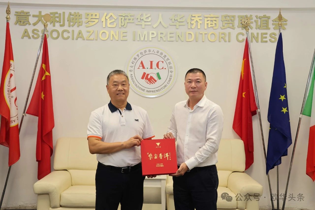周汝炎会长向来宾介绍了佛罗伦萨华人华侨商贸联谊会自2009年成立以来的发展历程和取得的诸多成就,尤其是在推动佛罗伦萨商贸会中文学校建设方面的成果。他还提到,该会积极参与浙江大学举办的研修班,并与温州大学展开合作,通过线上授课的方式,为当地侨商提供专业的商业知识和经验,助力华侨企业家不断提升自身的竞争力与专业素养。周汝炎会长还在致辞中祝愿考察团此次访问意大利取得圆满成功,并期待未来中意双方在各领域的合作能更加深入,共同推动侨商事业的发展。