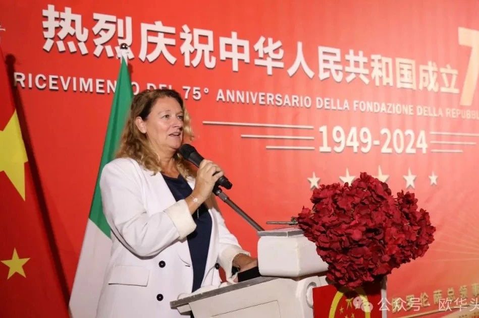 ▲欧洲议会议员纳尔代拉先生、普拉托市长布杰迪女士、佛罗伦萨市政府代表维奇尼先生随后在招待会上发表讲话,他们在致辞中对中华人民共和国成立75年来取得的伟大成就表示钦佩,并重申了托斯卡纳大区与中国的友好合作关系,表示佛罗伦萨市、普拉托市与中国多年来的文化交流和经贸合作是双方共同发展的重要支柱,期待在未来继续加强与中国的各领域合作。