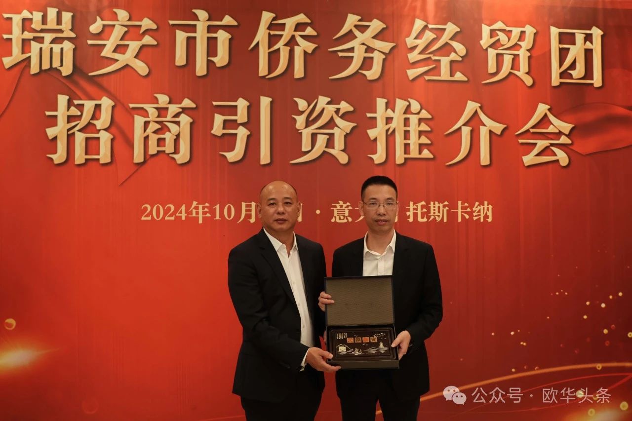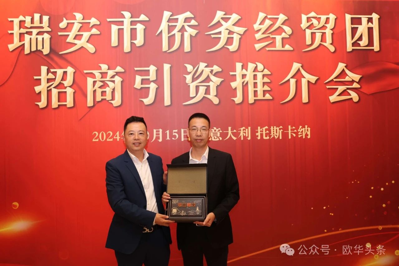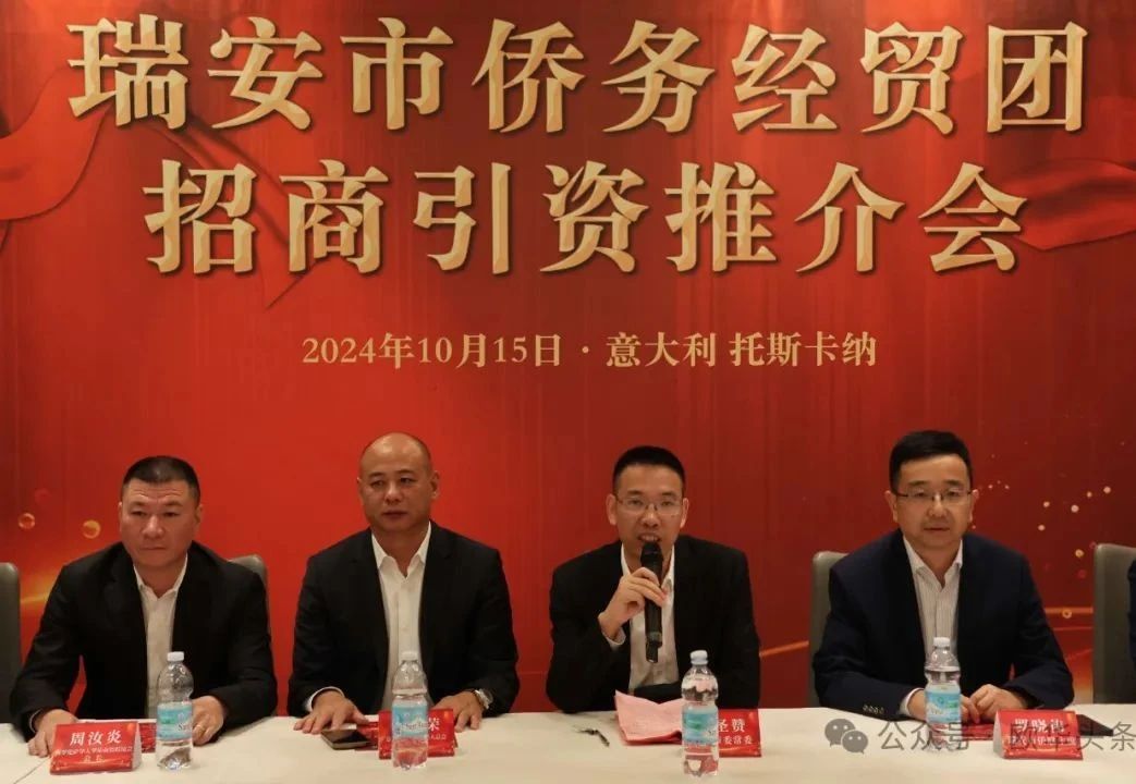 在走访慰问活动结束后,瑞安市侨务经贸团在意大利普拉托市举行了招商引资推介会。