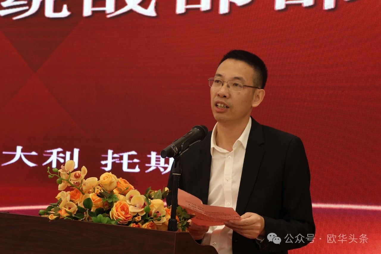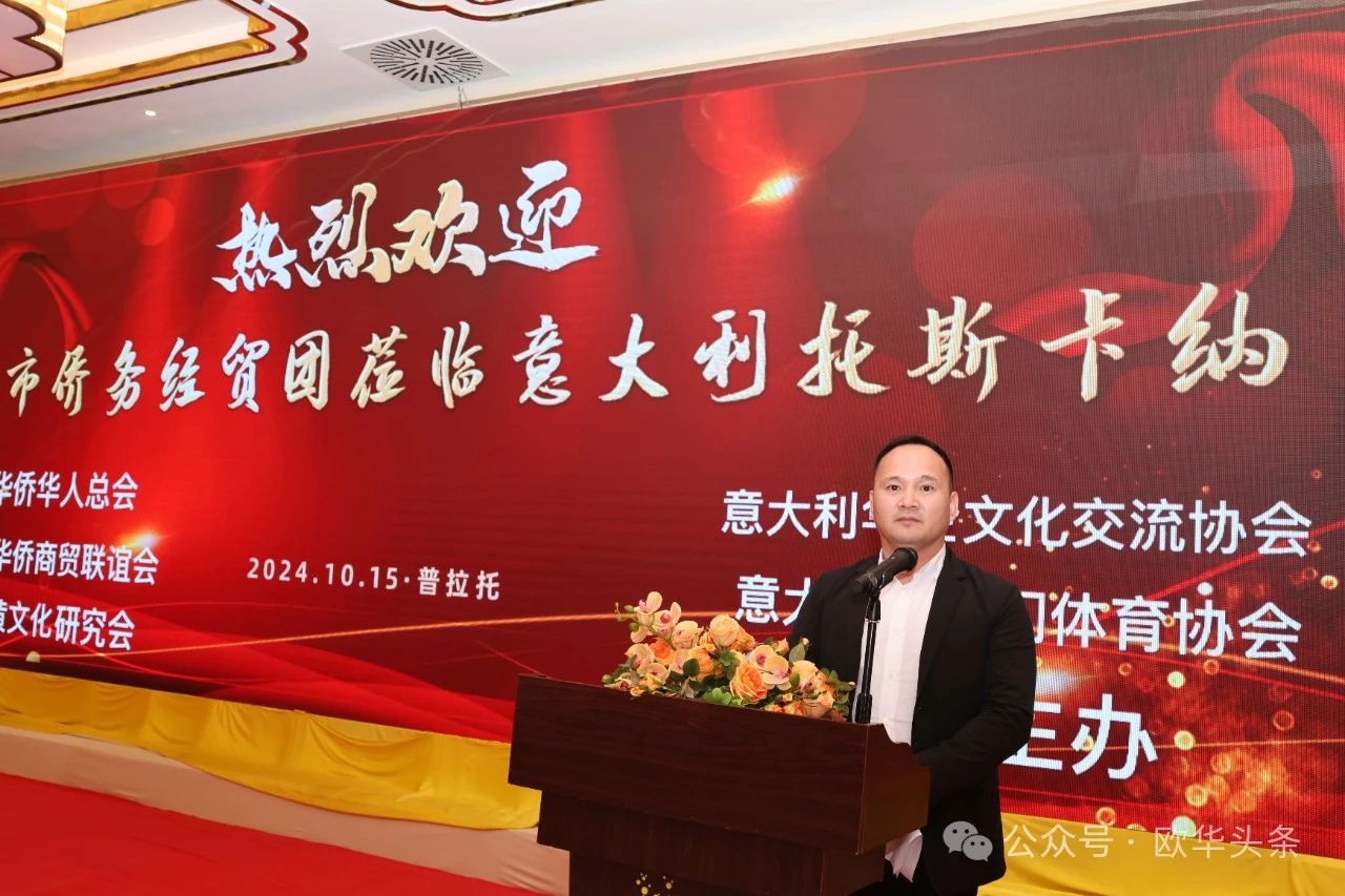 ▲意大利华企文化交流协会会长曹隆科主持当天的欢迎晚会。他代表此次活动的联合主办方向瑞安市侨务经贸团的到访表示热烈欢迎,并隆重介绍了出席此次活动的领导和佛罗伦萨领区各侨团的负责人。他表示,本次活动不仅是中意两地交流合作的纽带,也是侨胞凝聚力量、共谋发展的重要契机。通过这样的活动,希望进一步促进两地的经贸文化往来,推动更多合作落地生根。