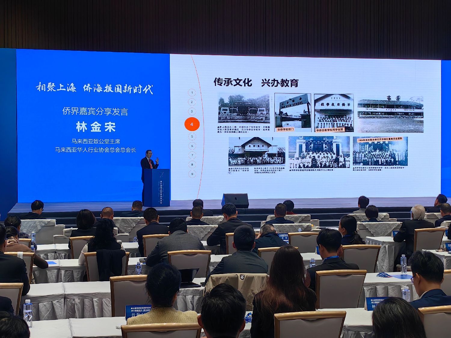11月6日,2024年第七届海外侨团合作论坛在上海举行,马来西亚致公堂主席、马来西亚华人行业总会总会长林金宋作分享交流。(图片来源:范宇斌)
