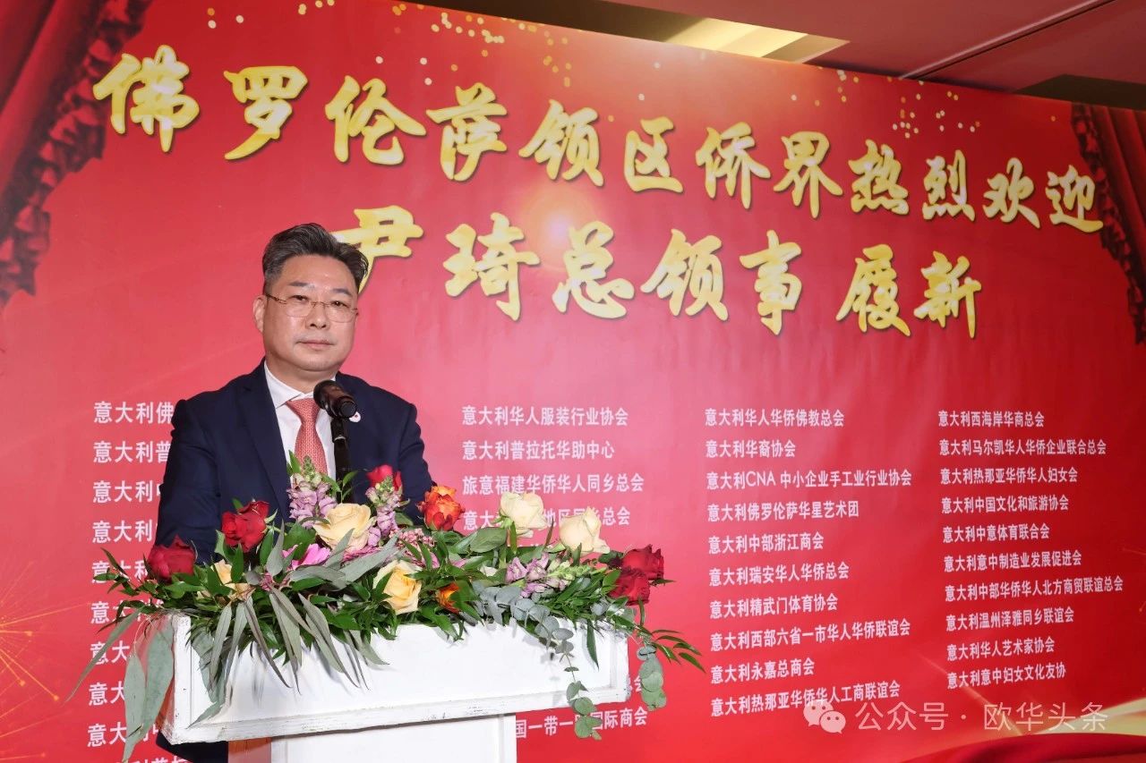 (陈静)2024年11月15日晚,意大利佛罗伦萨领区侨界在Libeccio酒店隆重举行欢迎会,热烈欢迎尹琦总领事履新。此次活动由领区40个侨团联合主办,现场气氛热烈,来在佛罗伦萨、普拉托、热那亚、马尔凯大区等地的侨界代表300多人齐聚一堂,真诚表达对尹琦总领事的热烈欢迎与全力支持。欢迎会现场,侨界代表纷纷表达对尹总领事工作的期待与祝福。