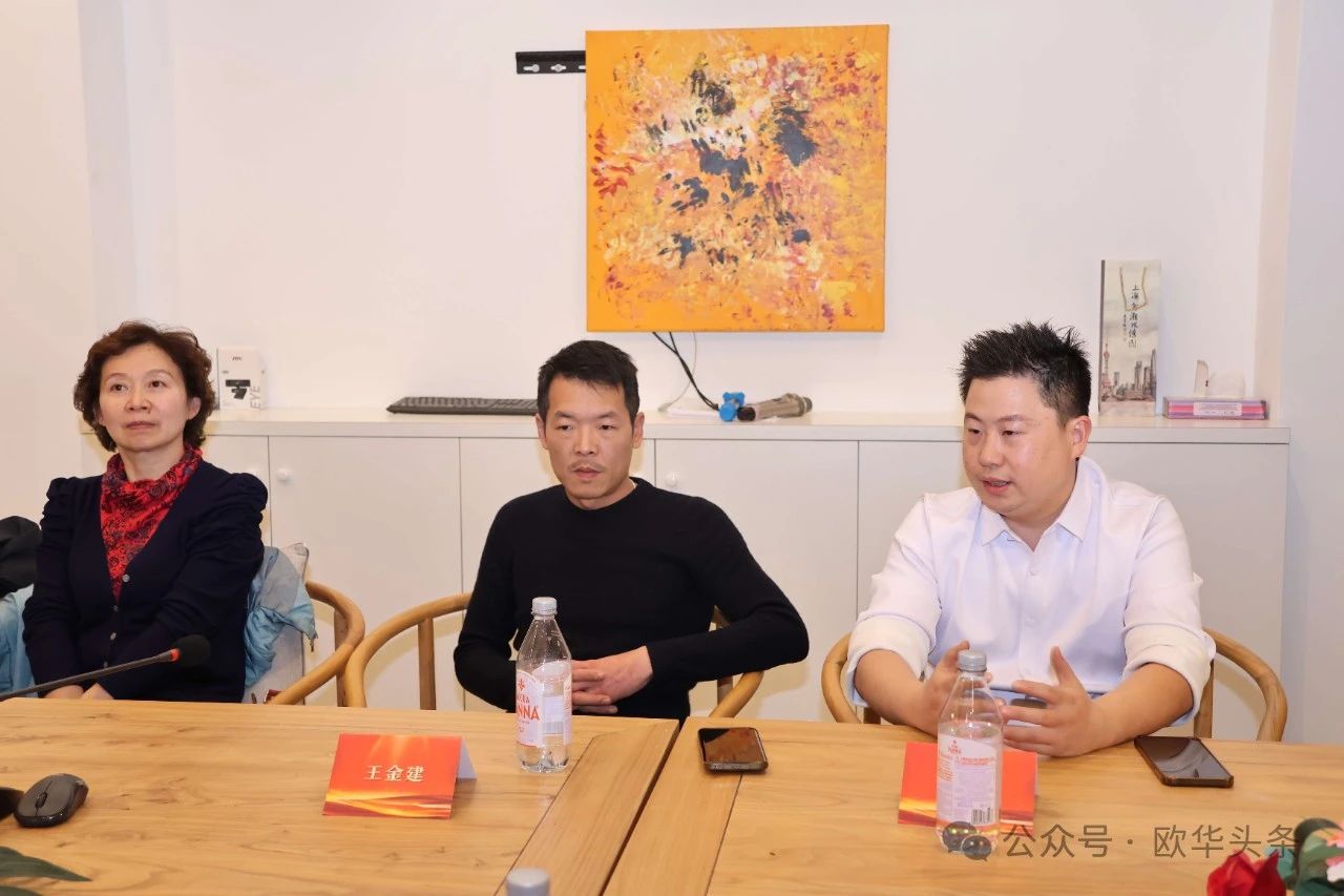 ▲欧洲青年企业家协会首席执行会长蒋一赫(右一)介绍了普拉托市的基本情况和主要产业。他提到,普拉托市不仅是意大利的重要纺织业中心,也是欧洲华人聚集的核心地带,他希望通过这样的交流活动,让更多人了解普拉托的独特优势,同时也帮助华商们在事业上越走越远,把日子越过越好。