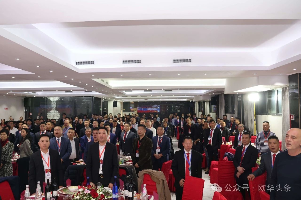 ▲意大利西部六省一市华侨华人联谊会首席执行会长王永信先生登台,在庄重而热烈的氛围中,郑重宣布第十二届换届庆典大会正式开幕,全场随即奏响雄壮而激昂的中意两国国歌。
