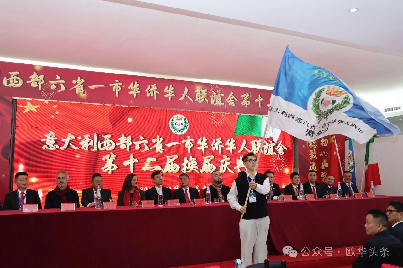 青年部部长周亿仁挥舞起旗帜,新生代华侨华人以蓬勃的姿态展现了传承与创新的力量。这一系列仪式,既是意大利西部六省一市华侨华人联谊会历史的延续与传承,也是对未来的美好展望,充分展现了侨团的凝聚力和使命感。