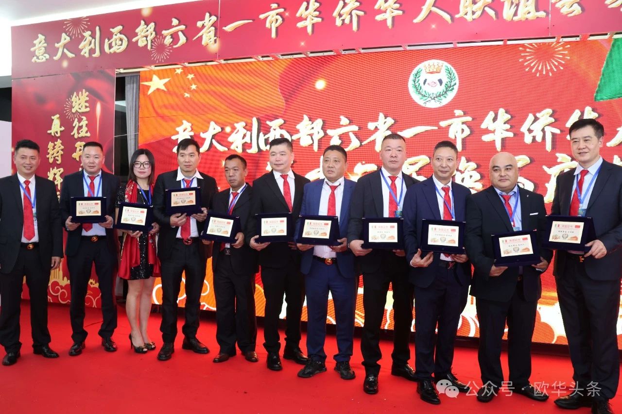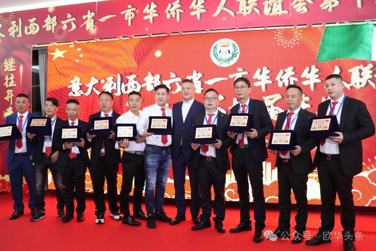 各兄弟侨团代表及联谊会会员陆续上台,与莅临大会的主要领导合影留念。每一张合影都充满了热情与友好,充分展现了中意双方在文化交流与社会合作中的深厚情谊。