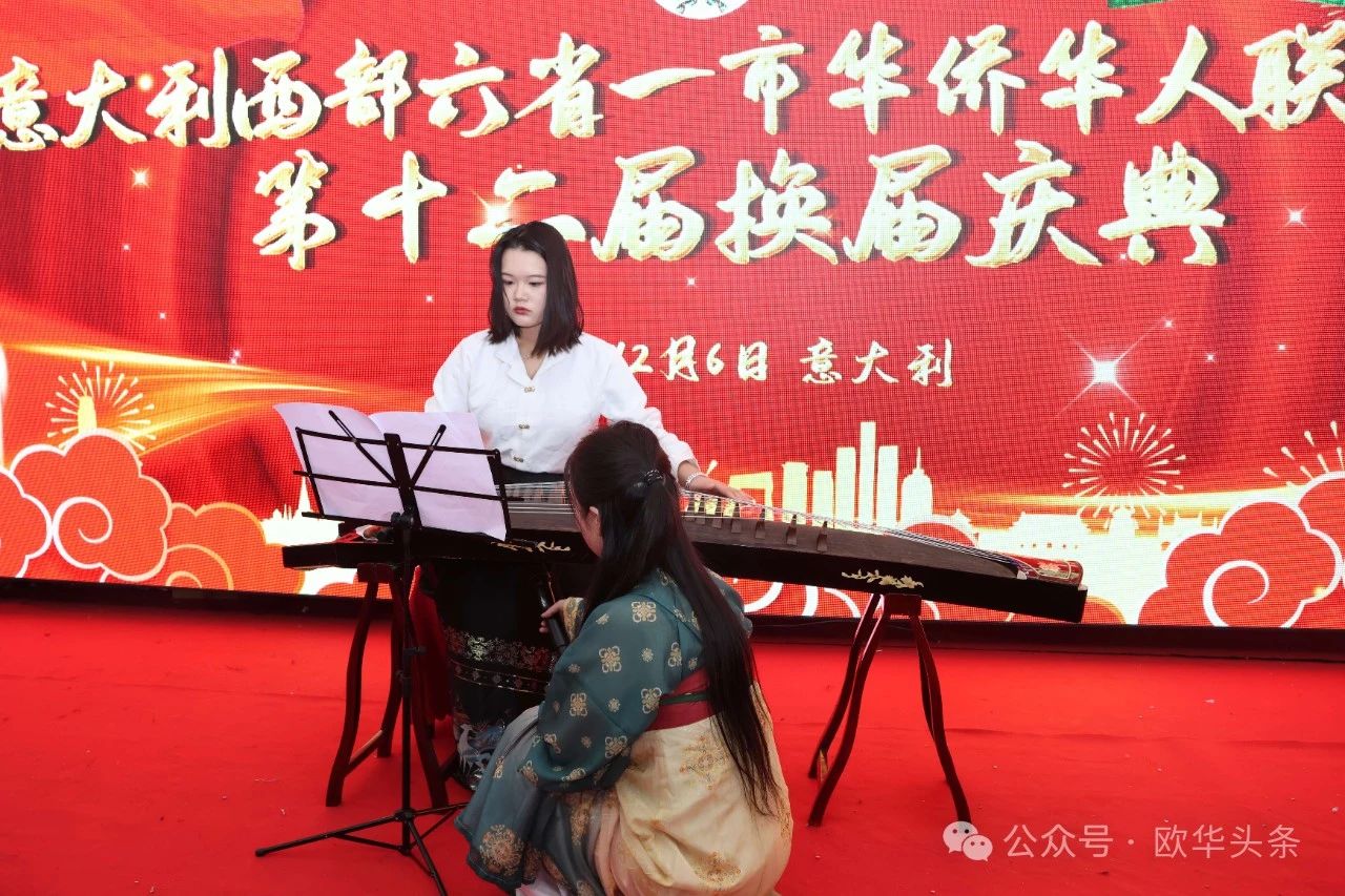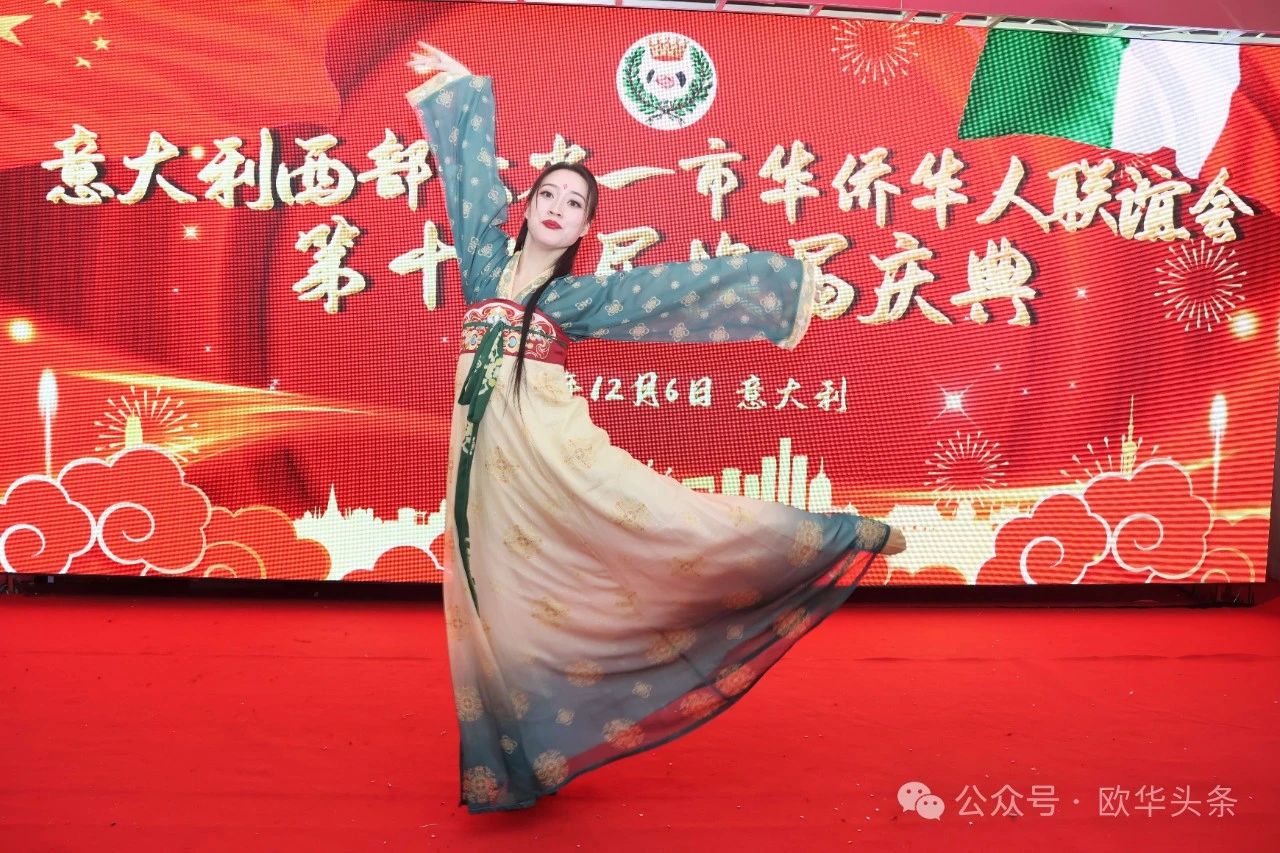 主办方精心安排了一系列精彩的文艺表演,充分展示了中意文化的交融与魅力。华星艺术团的李方晗演唱的《美丽心情》温暖了现场观众,随后的古风舞蹈和古筝演奏《高山流水》为庆典增添了浓厚的艺术气息。活动在热烈的气氛中圆满落幕,所有环节紧密有序,充分展示了华侨华人社团的凝聚力与文化精神。