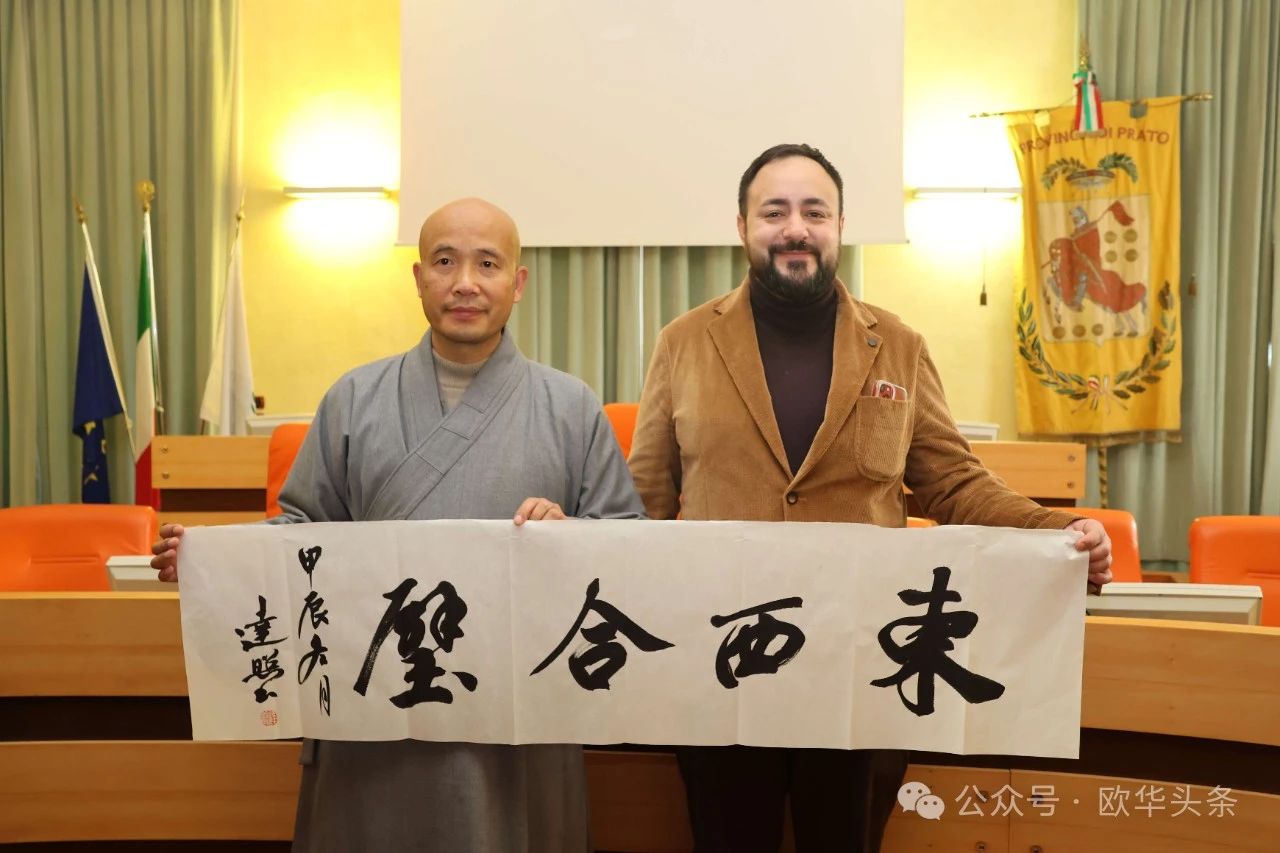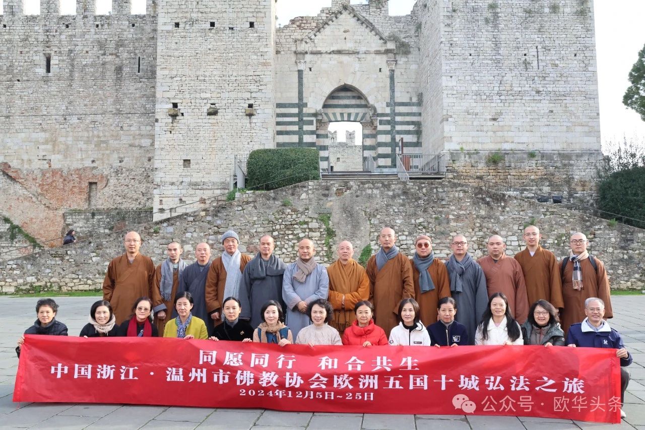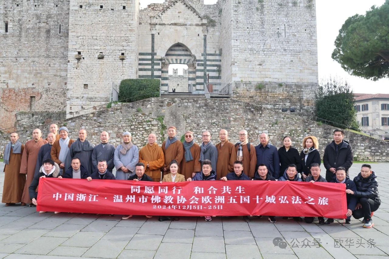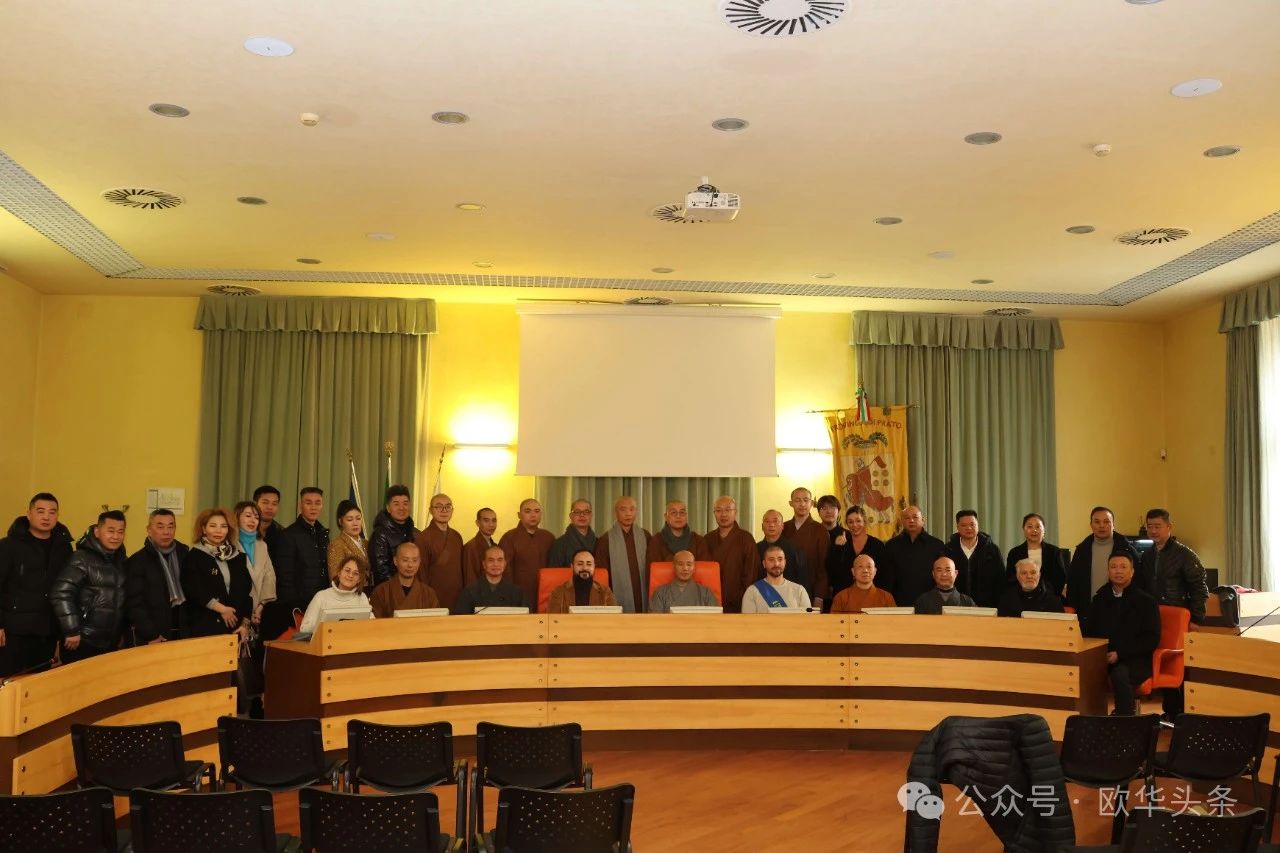 (陈静)2024年12月7日,中国浙江温州市佛教协会欧洲五国十城文化交流团在达照法师的带领下抵达意大利普拉托,受到意大利-中国贸易发展促进会主席王增理、意大利华侨华人佛教总会执行会长李秀娇、意大利中部文成同乡会会长周建华、意大利瑞安华侨华人总会会长丁金荣以及普拉托华商会名誉会长赵维新的热情接待。在各侨领的全程陪同下,交流团拜访了普拉托省政府,就促进中意文化交流与民间友好进行了深入交流,为侨界与当地社会的互动增添了新的活力。