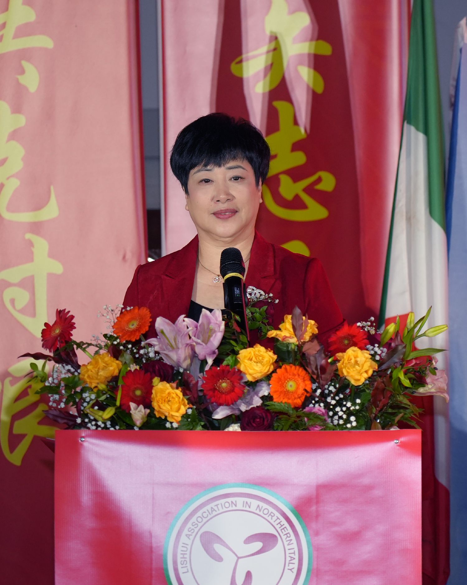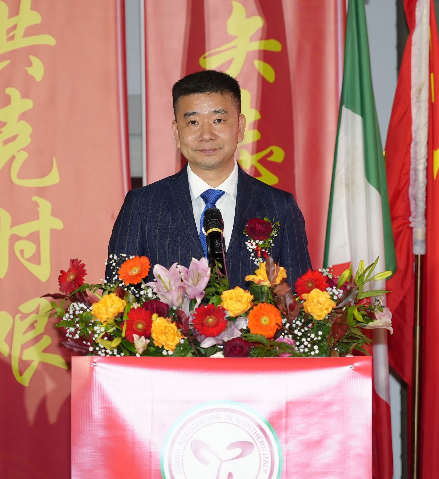 中国驻米兰总领事刘侃、致公党中央委员会侨海委委员暨浙江省委会侨海委副主任、浙江省侨联副主席季志海、意大利伦巴第大区议员Paolo Romano、米兰华侨华人工商会会长黄国权、欧洲青田同乡总会会长陈少奇、意大利华商总会会长洪森淼等先后致辞,对丽水同乡会成功换届、刘旭峰荣任新一届会长表示热烈祝贺。Paolo Romano议员还特别提到了在意大利抗疫最艰难的时刻,丽水同乡会及旅意侨胞对意大利各界给予的无私帮助和大力支持。